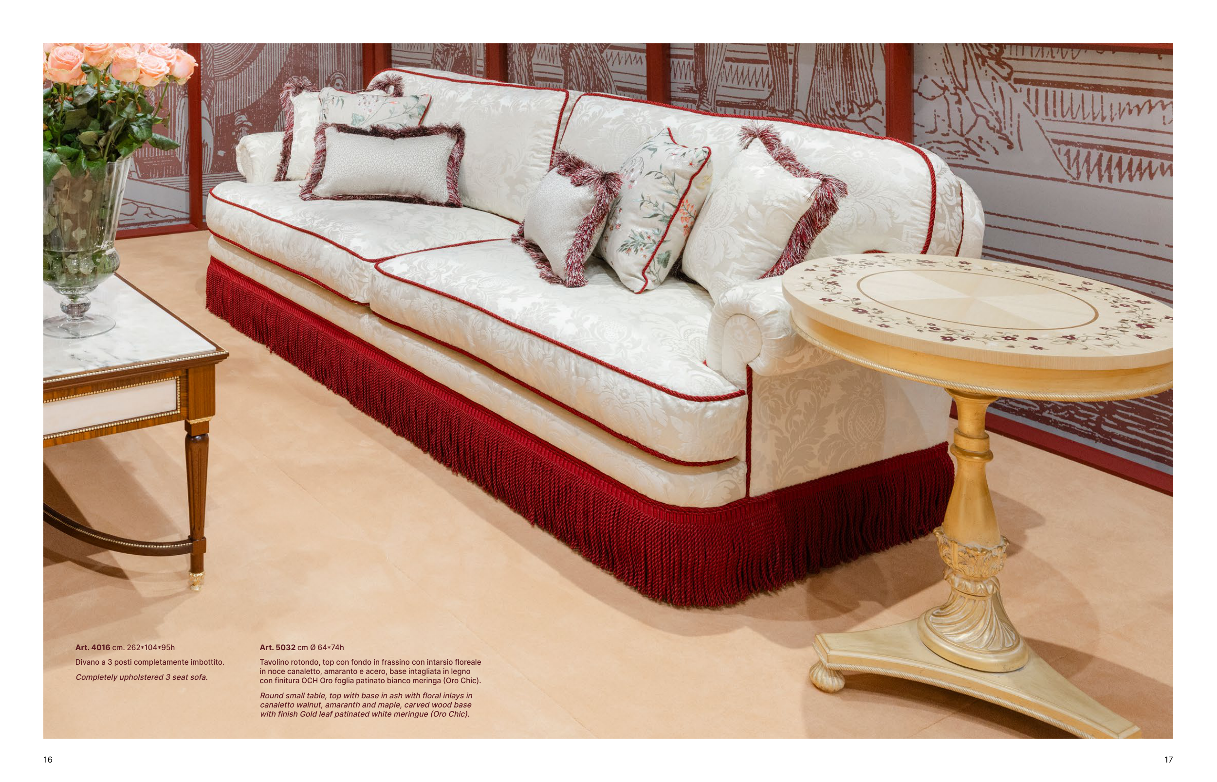 con finitura OCH Oro foglia patinato bianco meringa (Oro Chic).