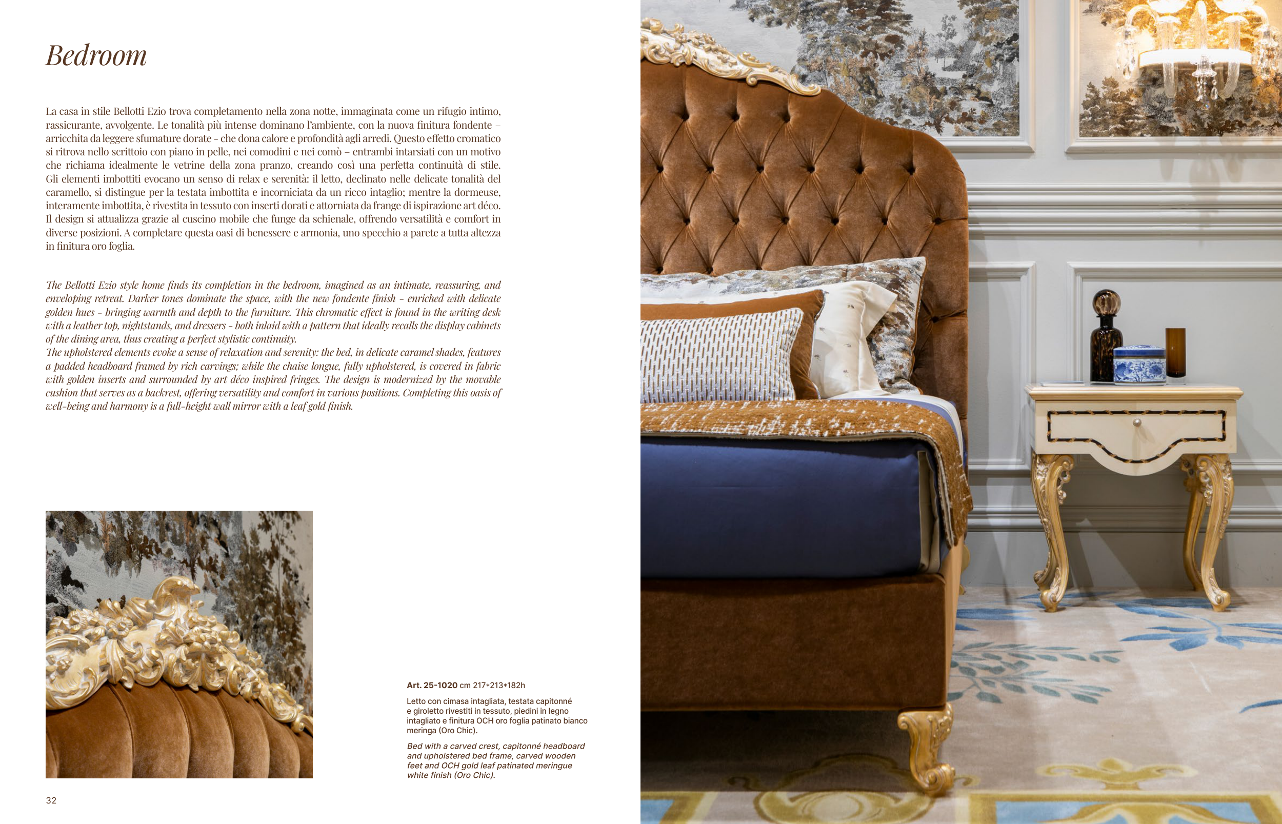 caramello, si distingue per la testata imbottita e incorniciata da un ricco intaglio; mentre la dormeuse,