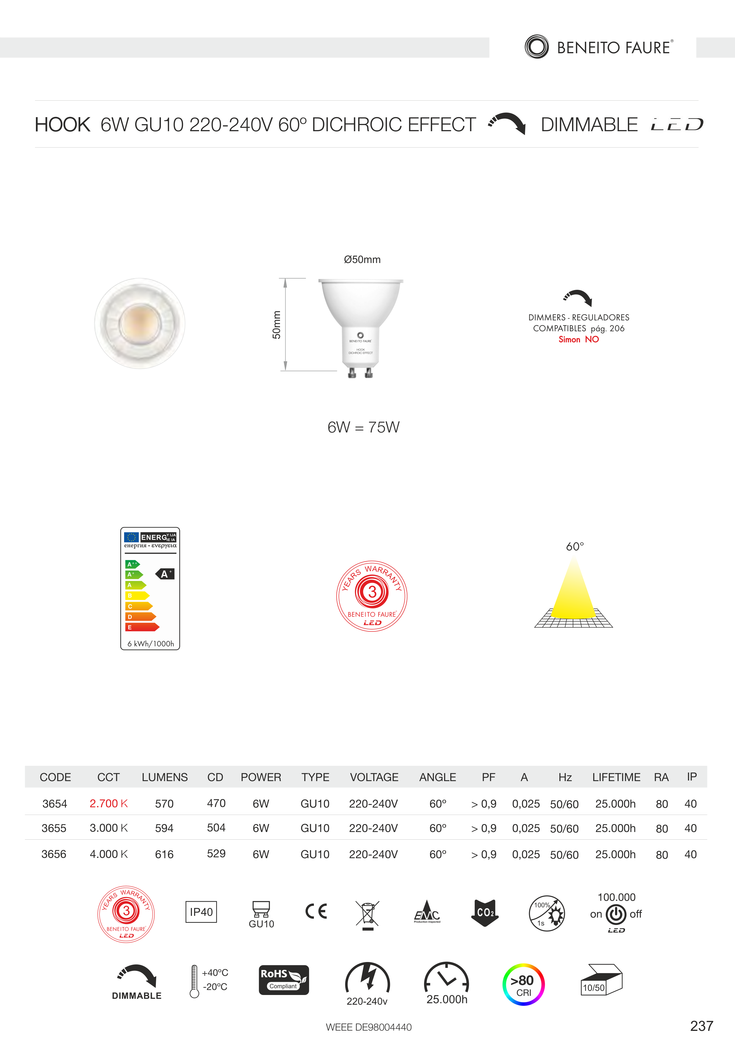 220-240V 60º DICHROIC EFFECT DIMMABLE