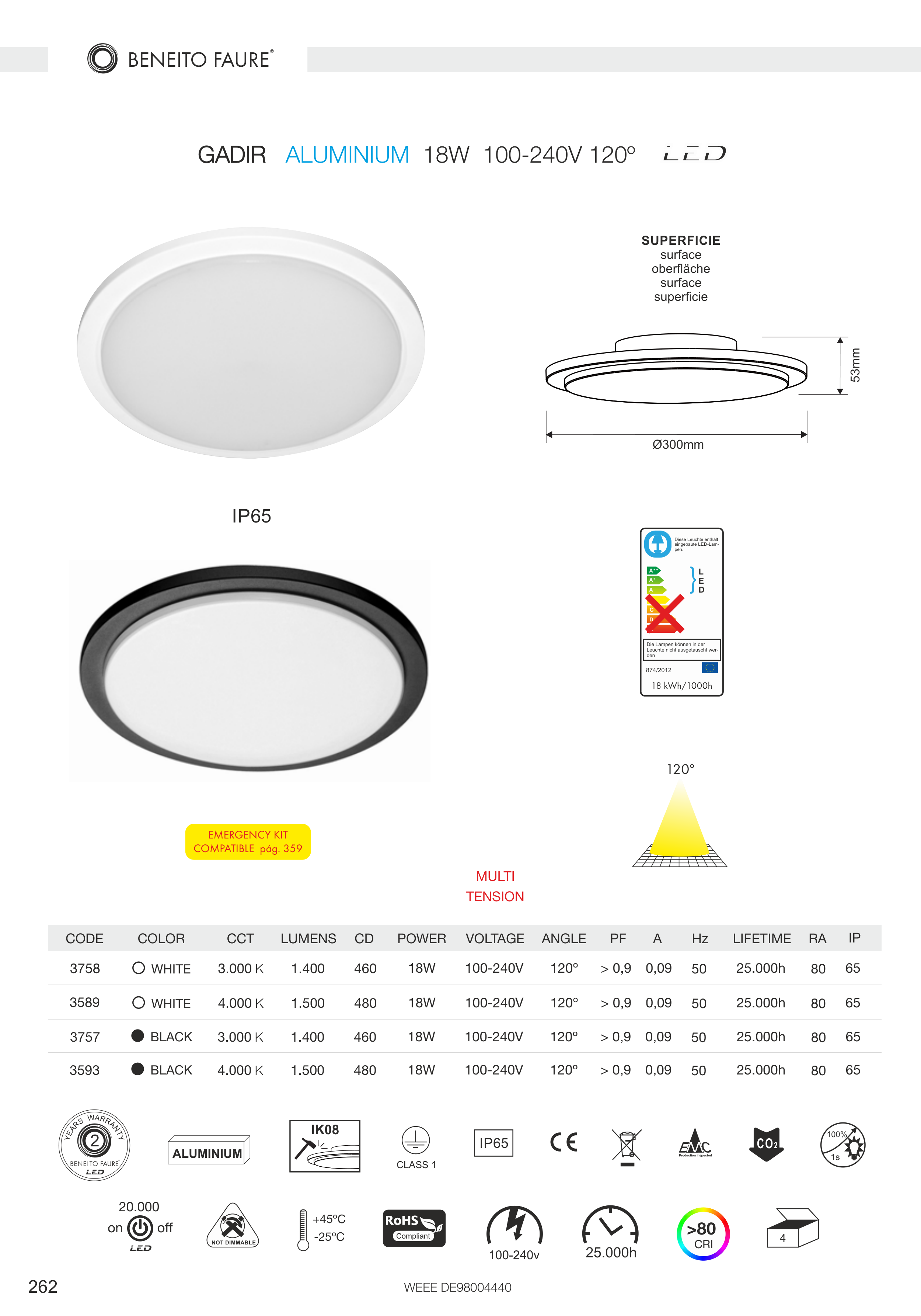 18W 100-240V 120º