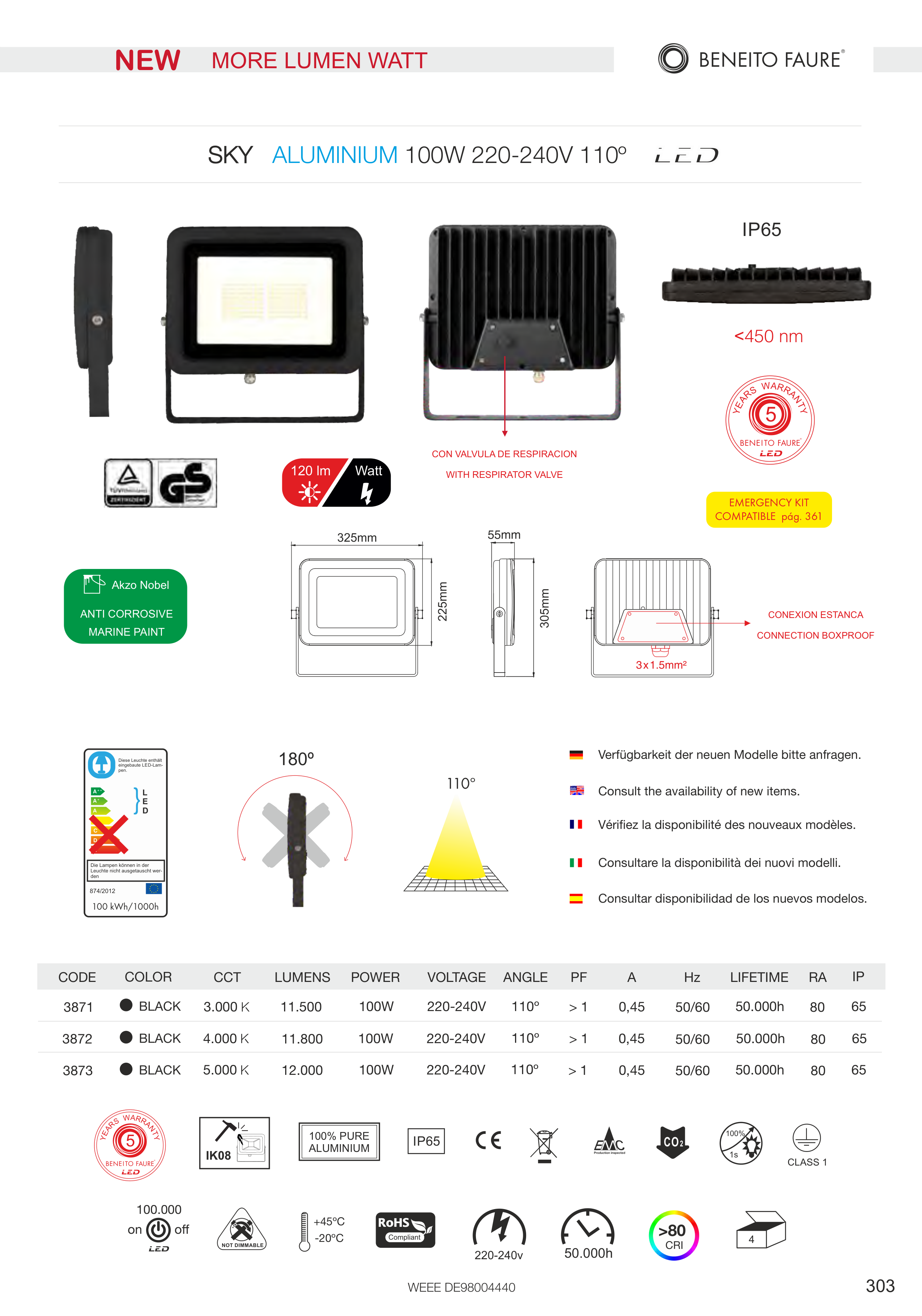 100W 220-240V 110º