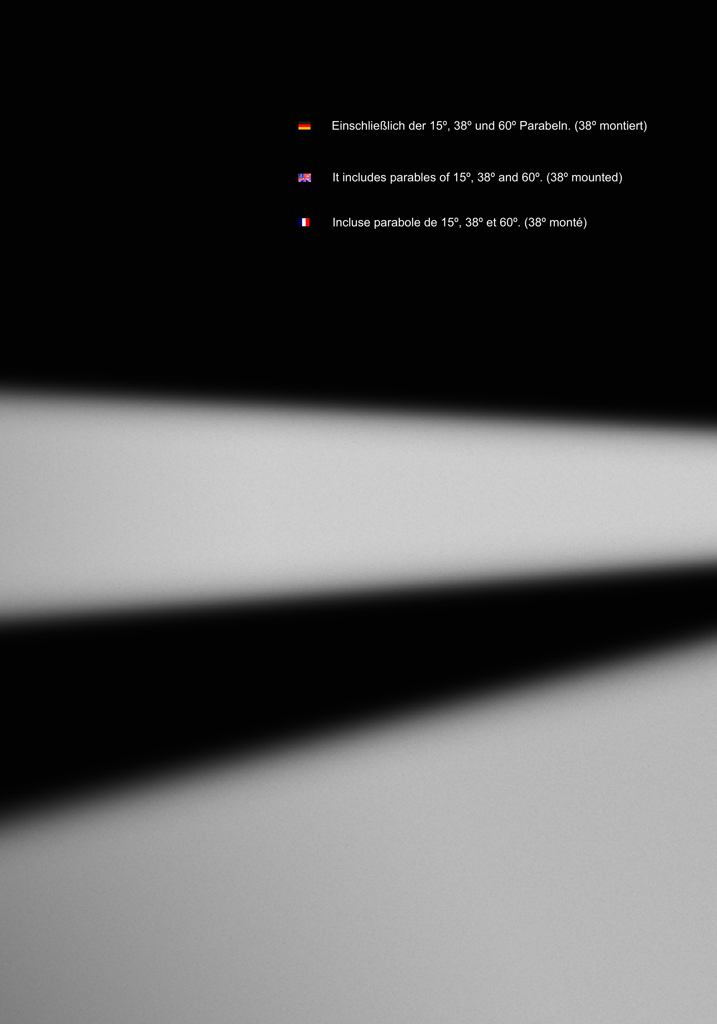 Incluse parabole de 15º, 38º et 60º. (38º monté)