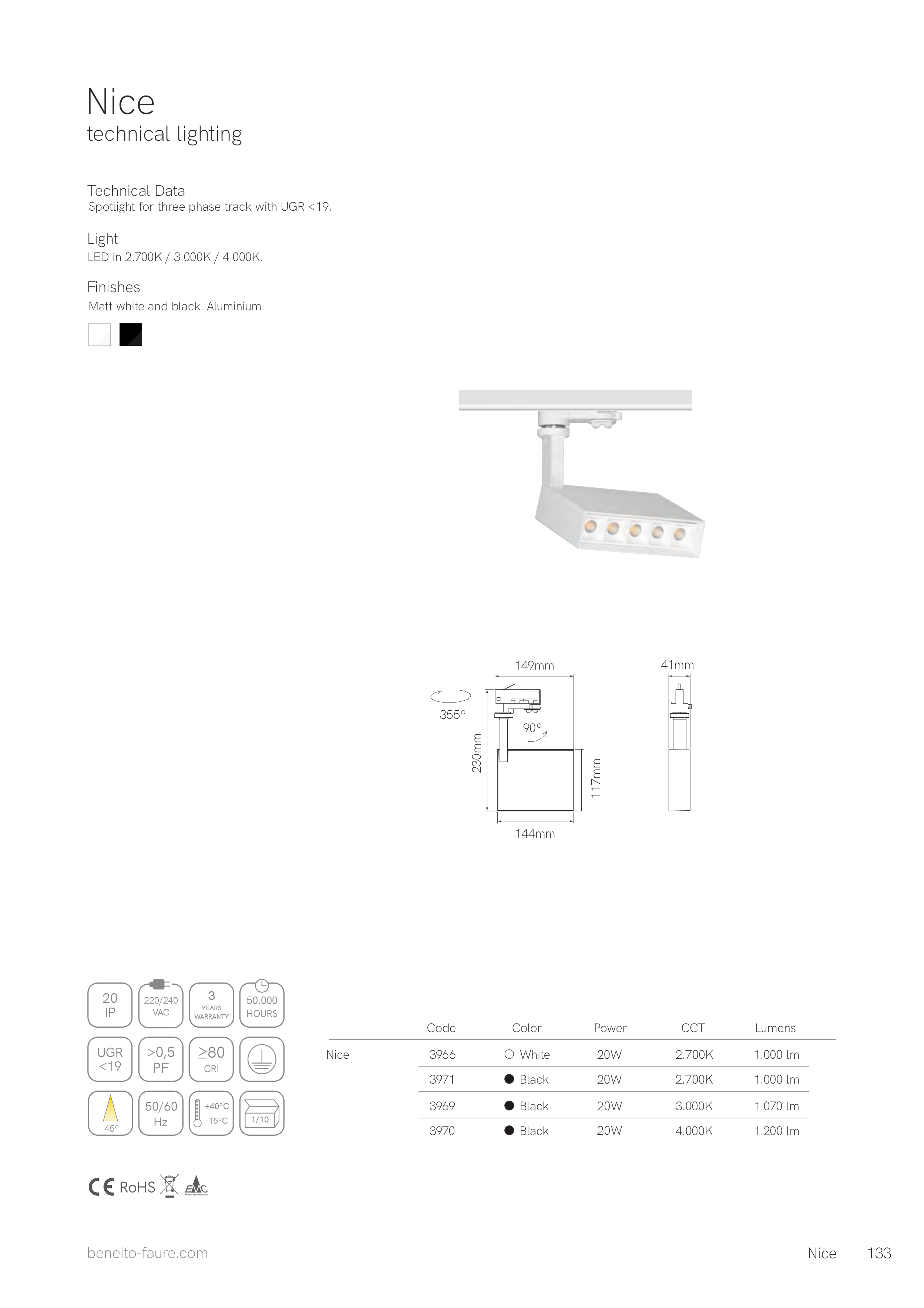 LED in 2.700K / 3.000K / 4.000K.