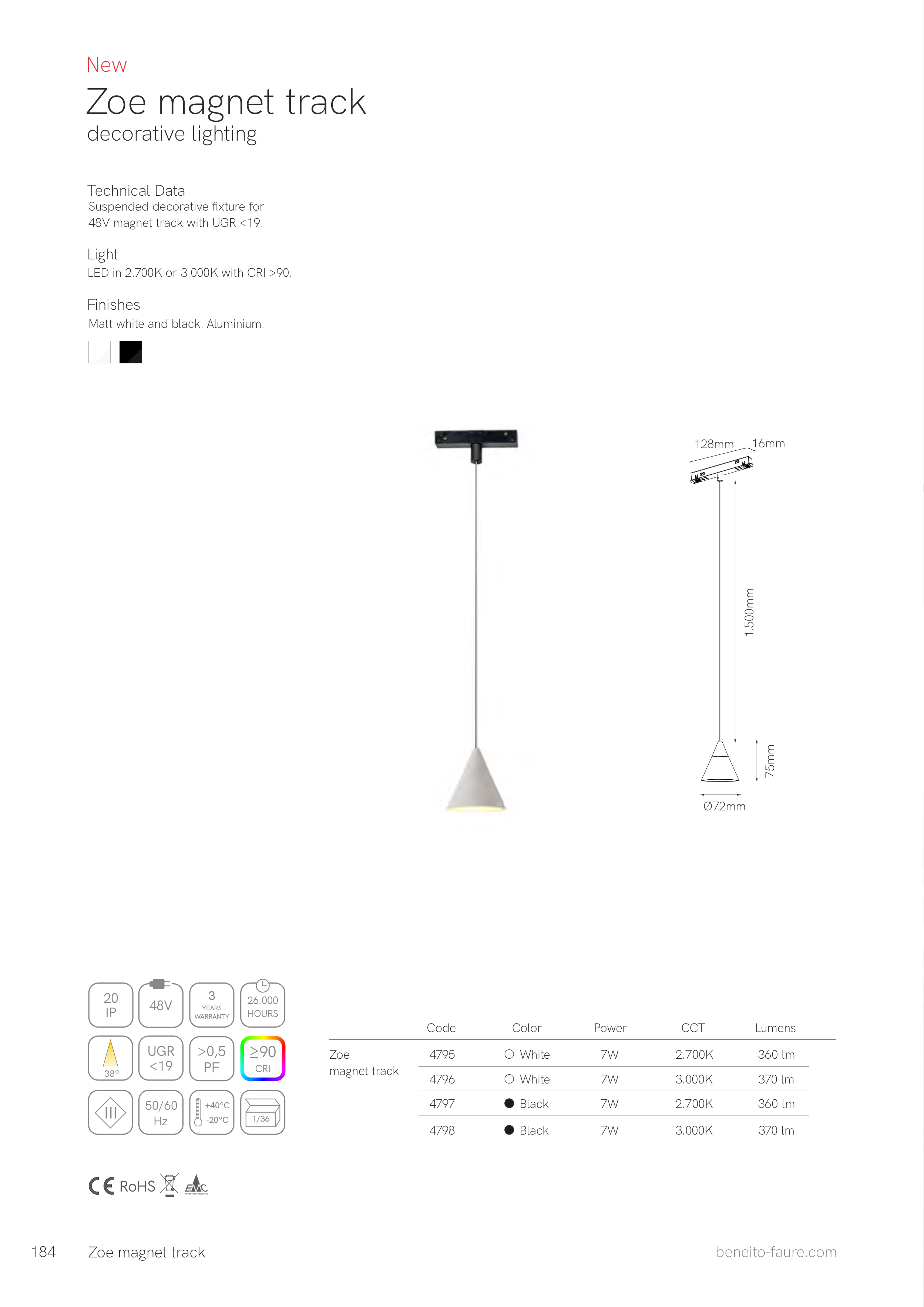 LED in 2.700K or 3.000K with CRI >90.