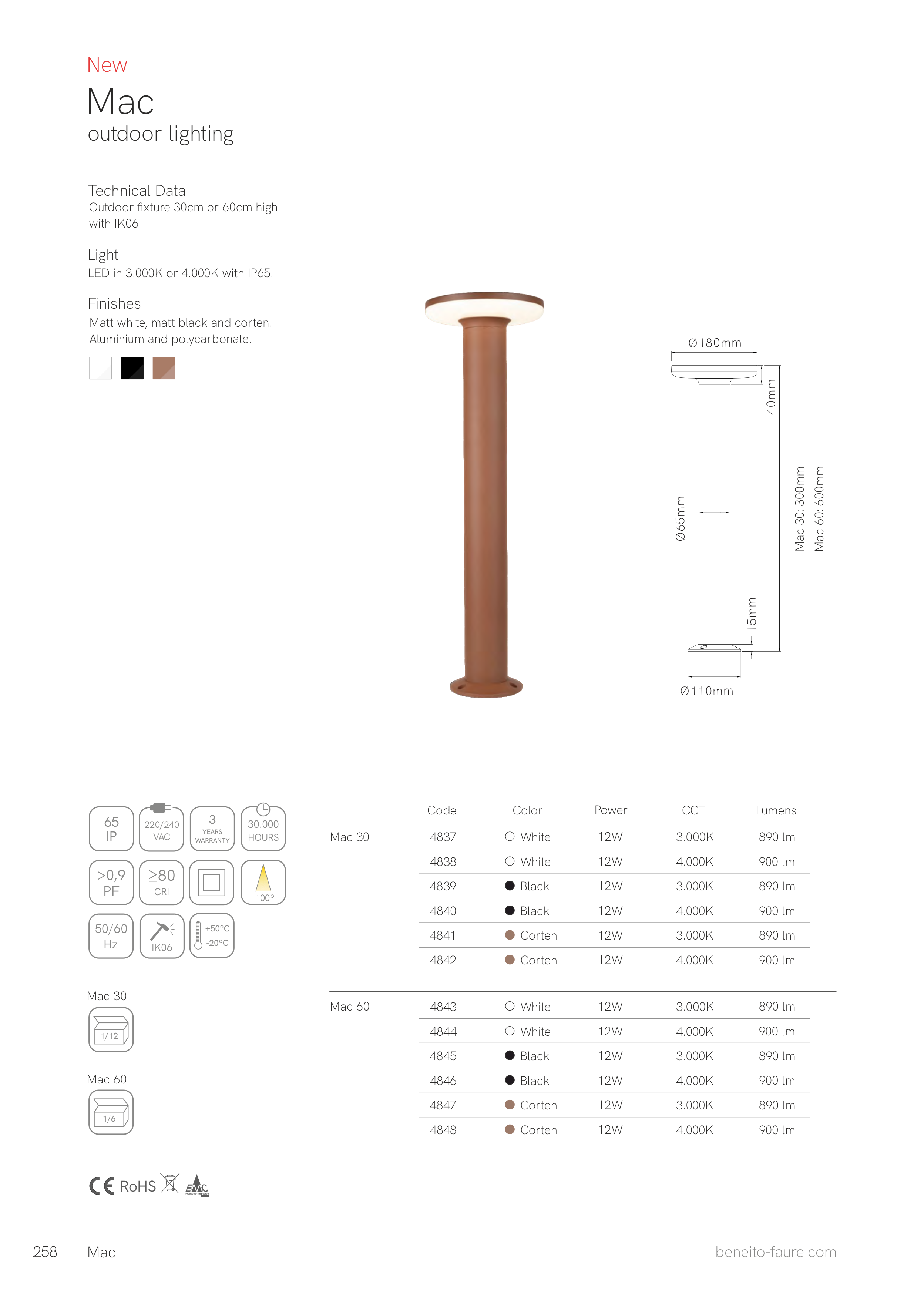 LED in 3.000K or 4.000K with IP65.