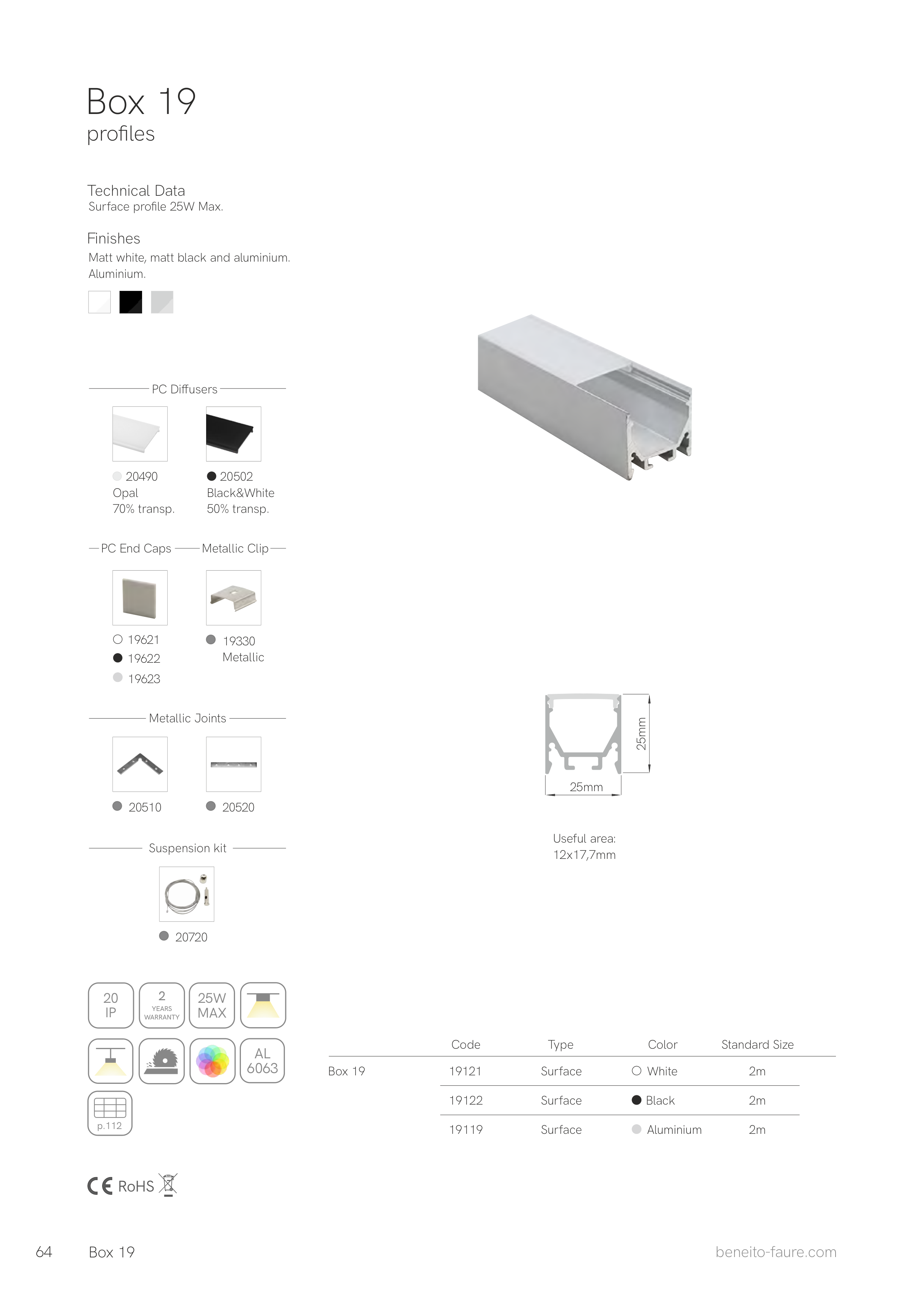 Surface profile 25W Max.