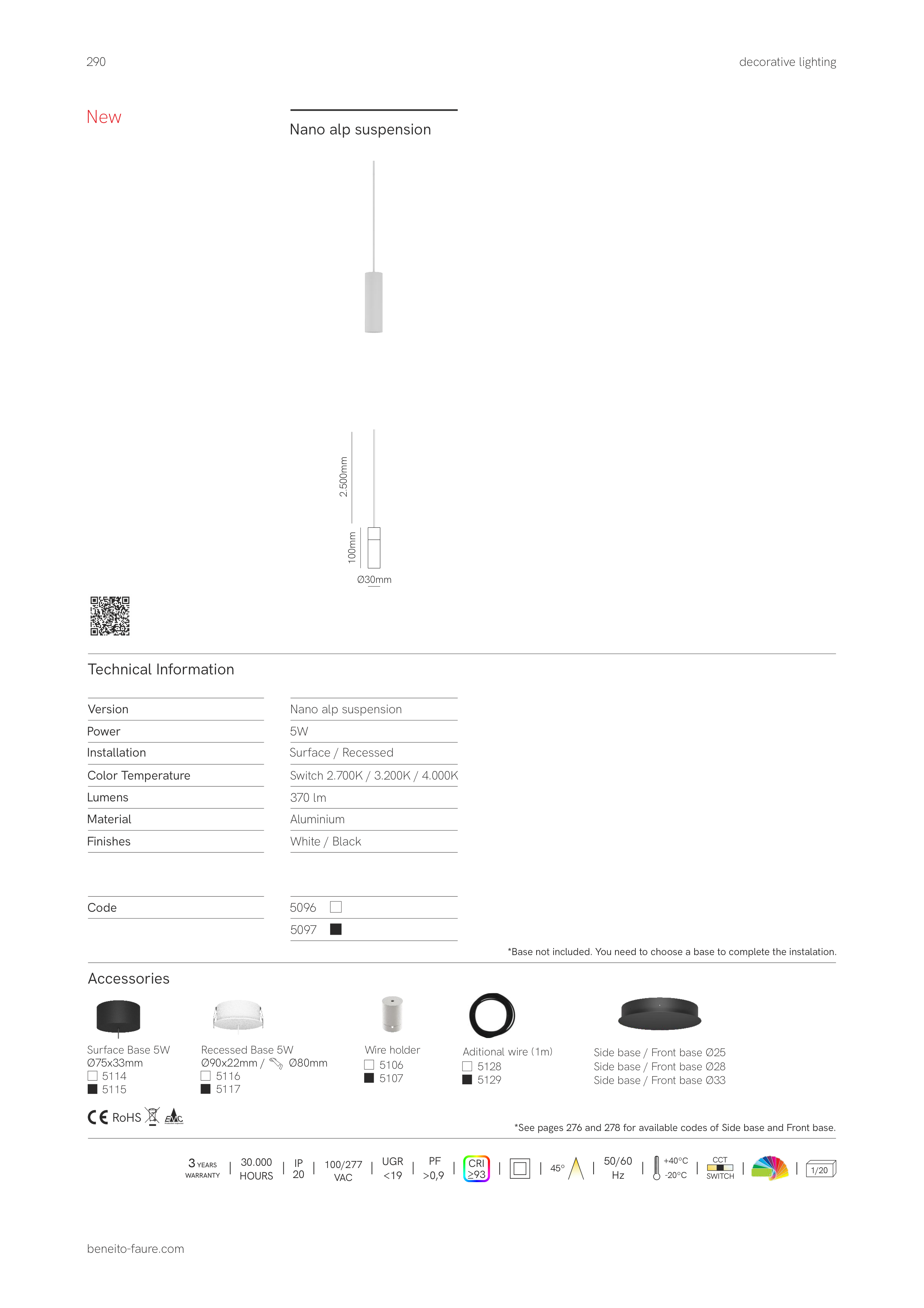 *Base not included. You need to choose a base to complete the instalation.