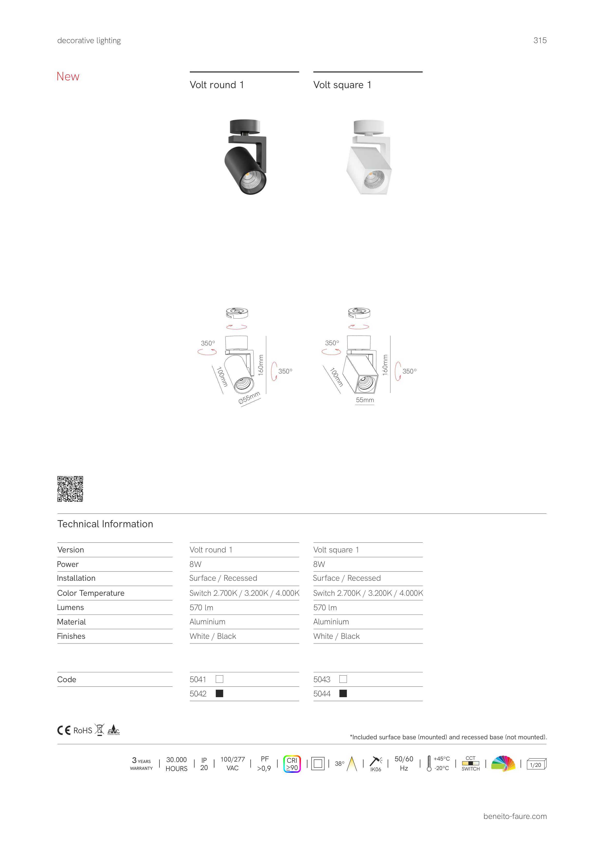*Included surface base (mounted) and recessed base (not mounted).