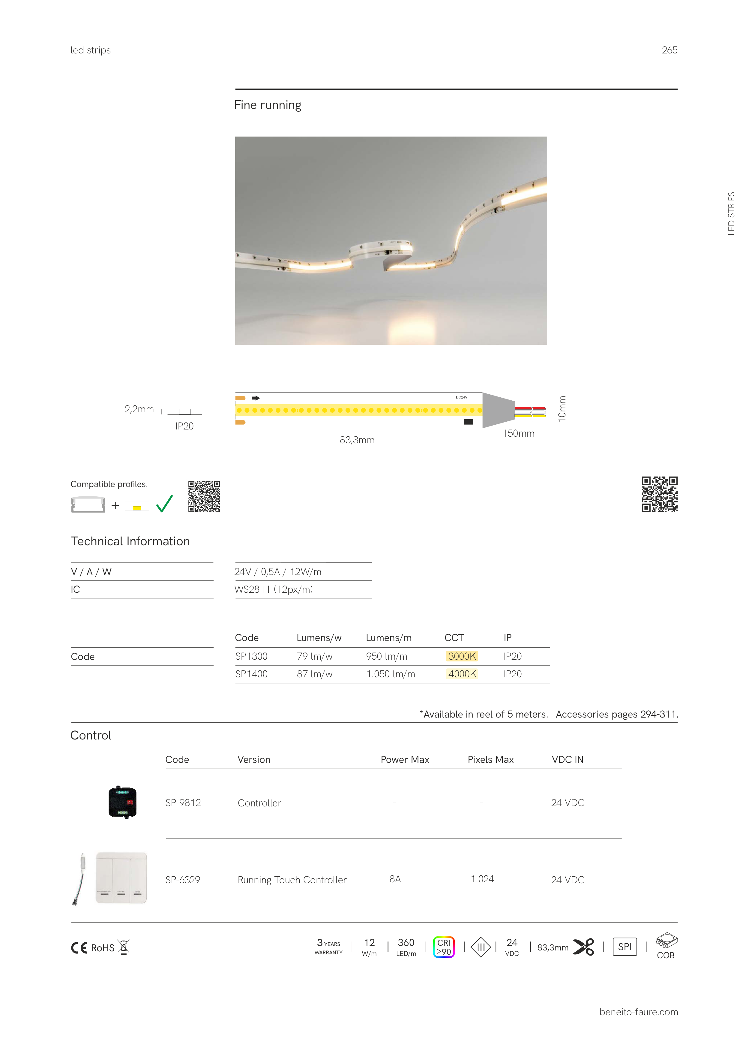*Available in reel of 5 meters. Accessories pages 294-311.