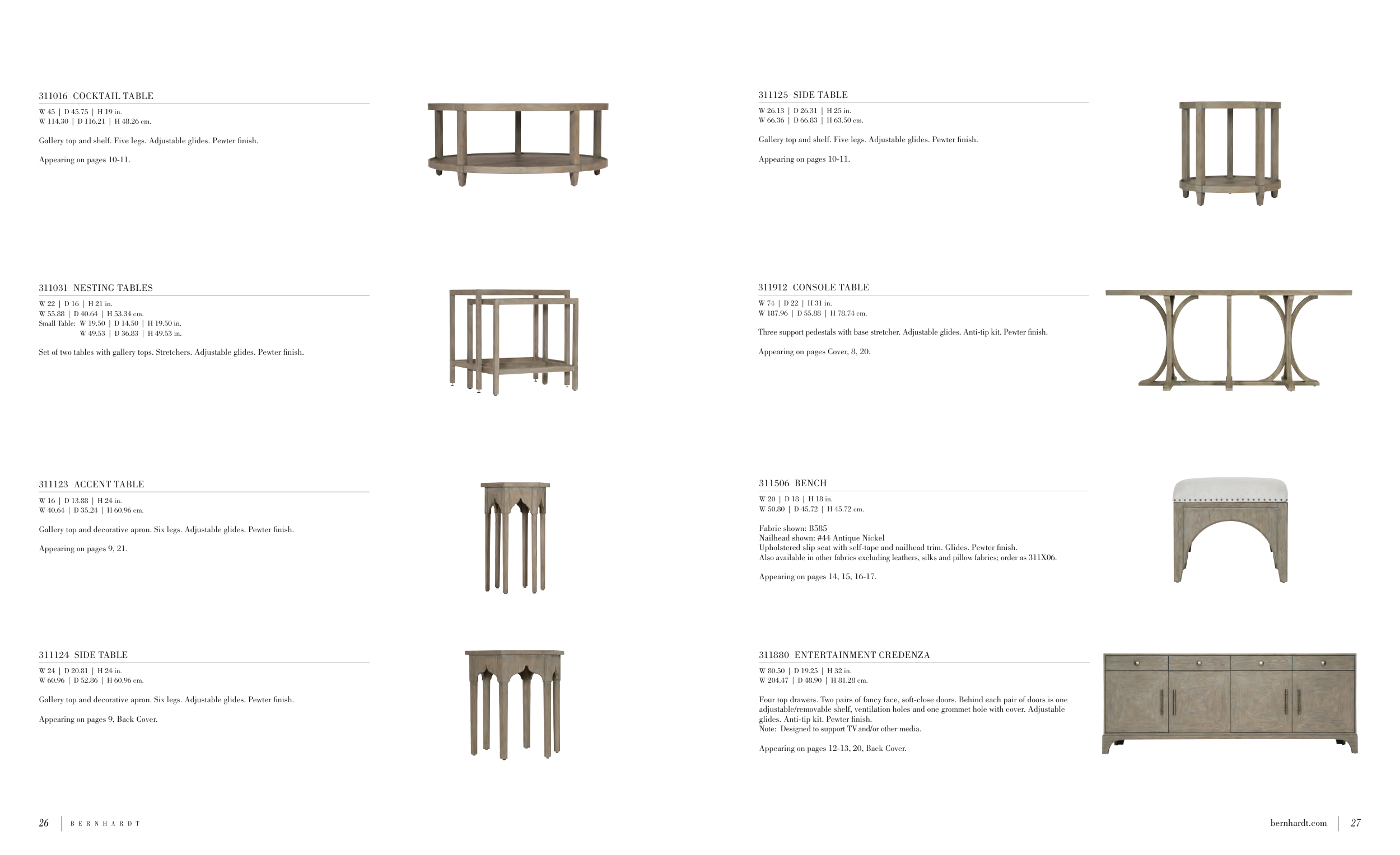 glides. Anti-tip kit. Pewter finish.