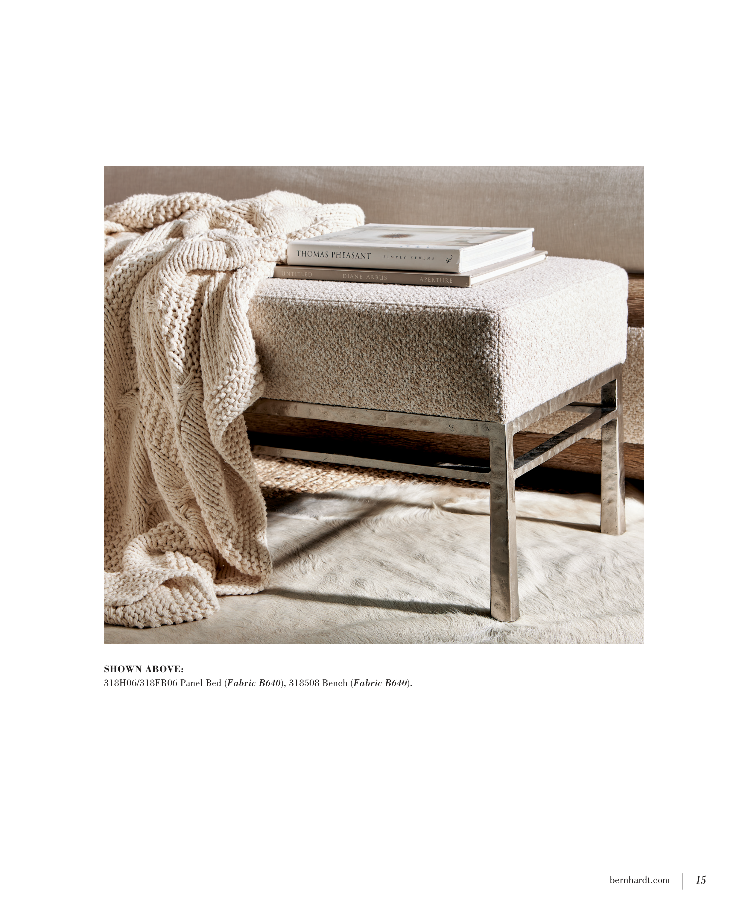 318H06/318FR06 Panel Bed (Fabric B640), 318508 Bench (Fabric B640).