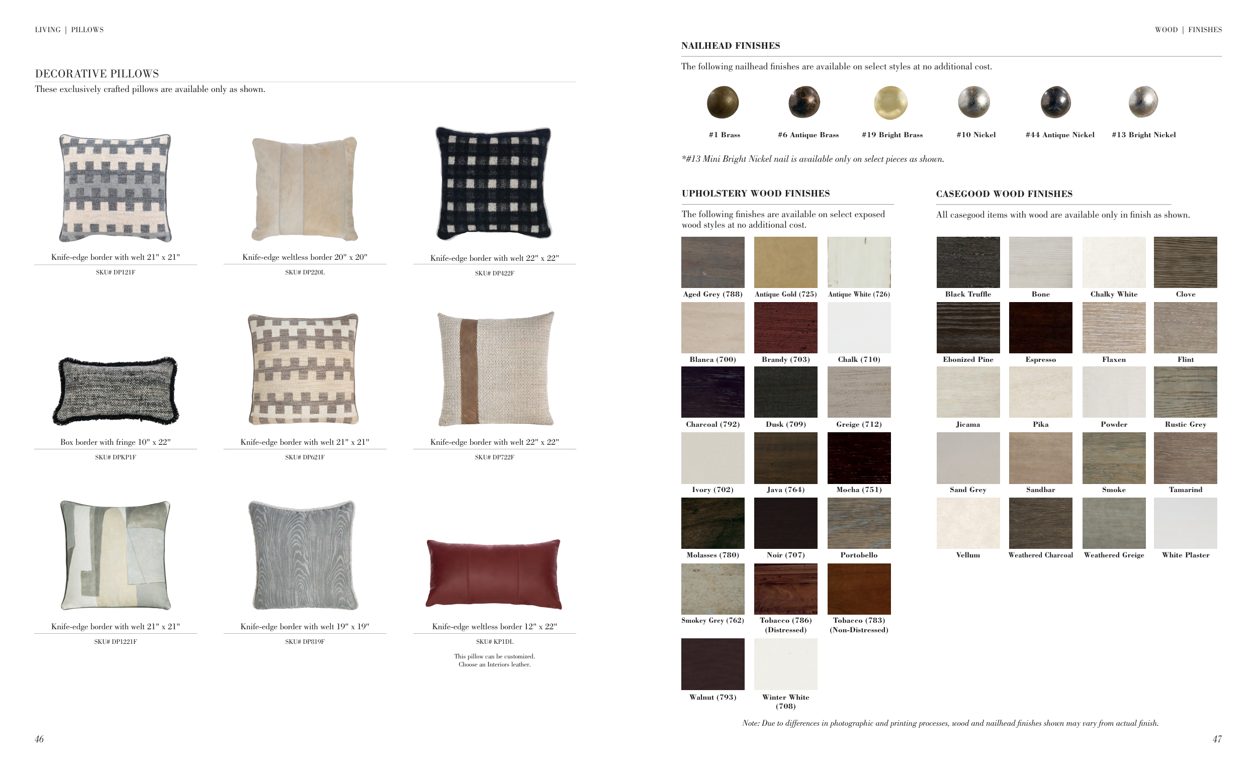 Note: Due to differences in photographic and printing processes, wood and nailhead finishes shown may vary from actual finish.