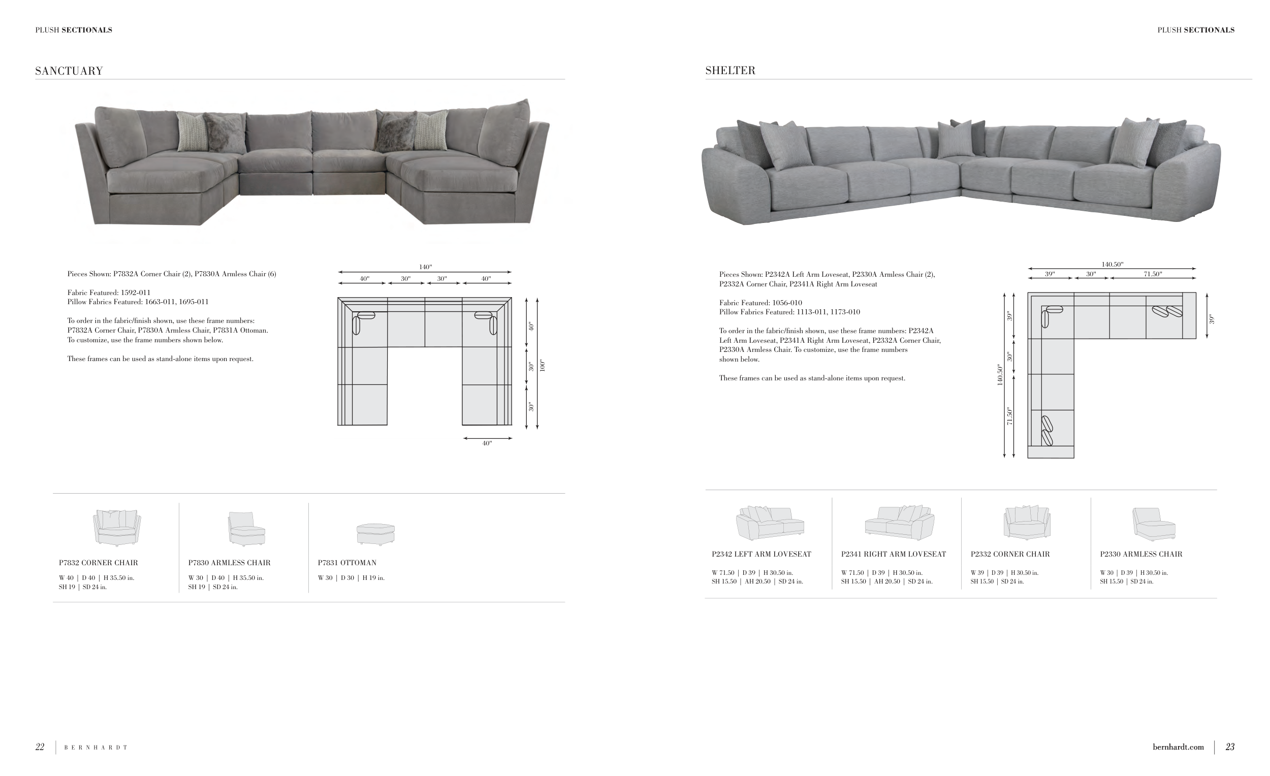 Left Arm Loveseat, P2341A Right Arm Loveseat, P2332A Corner Chair,