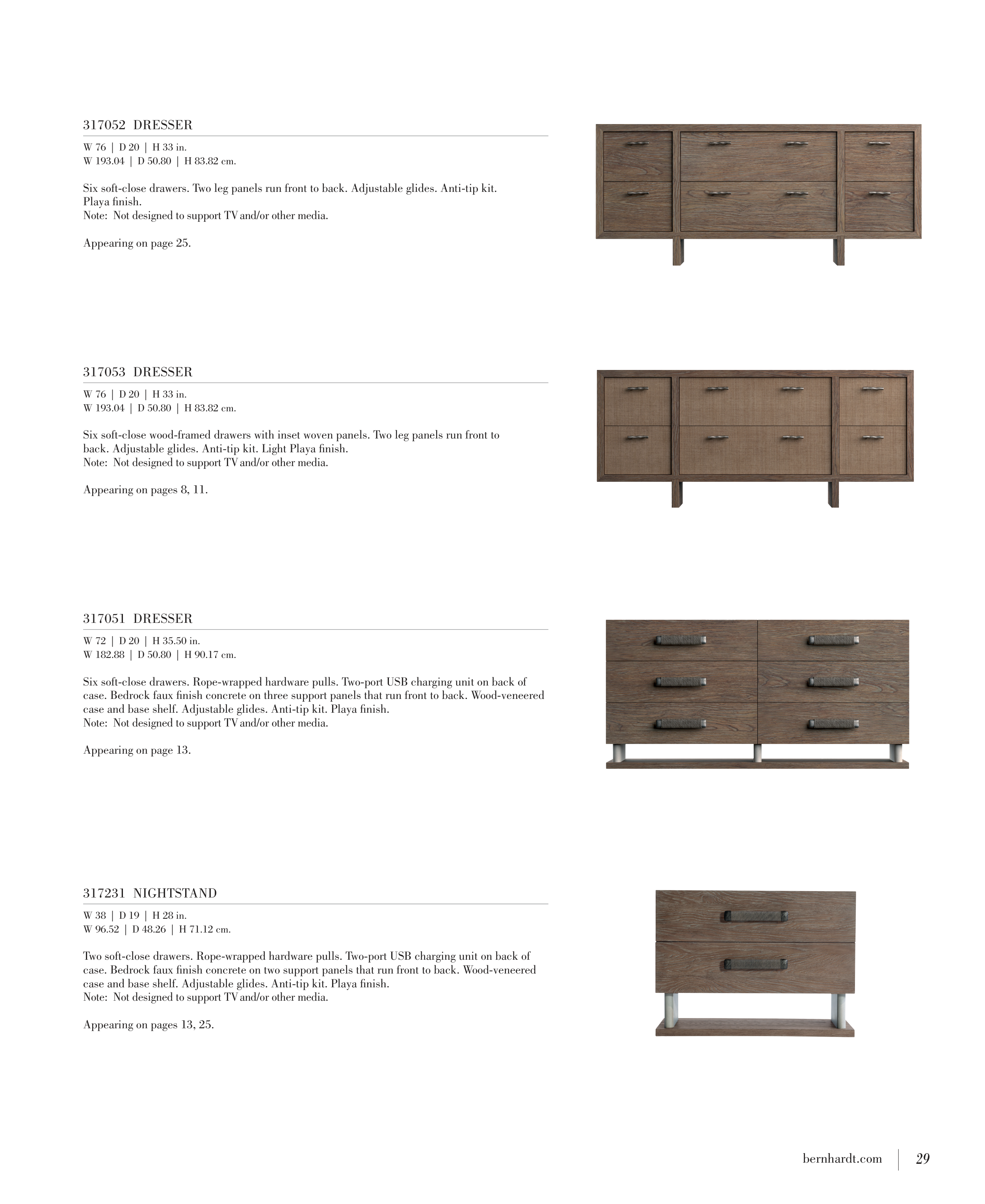 Six soft-close drawers. Rope-wrapped hardware pulls. Two-port USB charging unit on back of