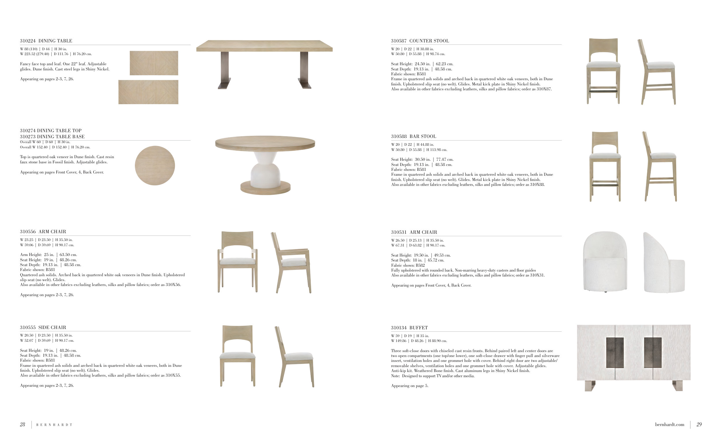 Quartered ash solids. Arched back in quartered white oak veneers in Dune finish. Upholstered