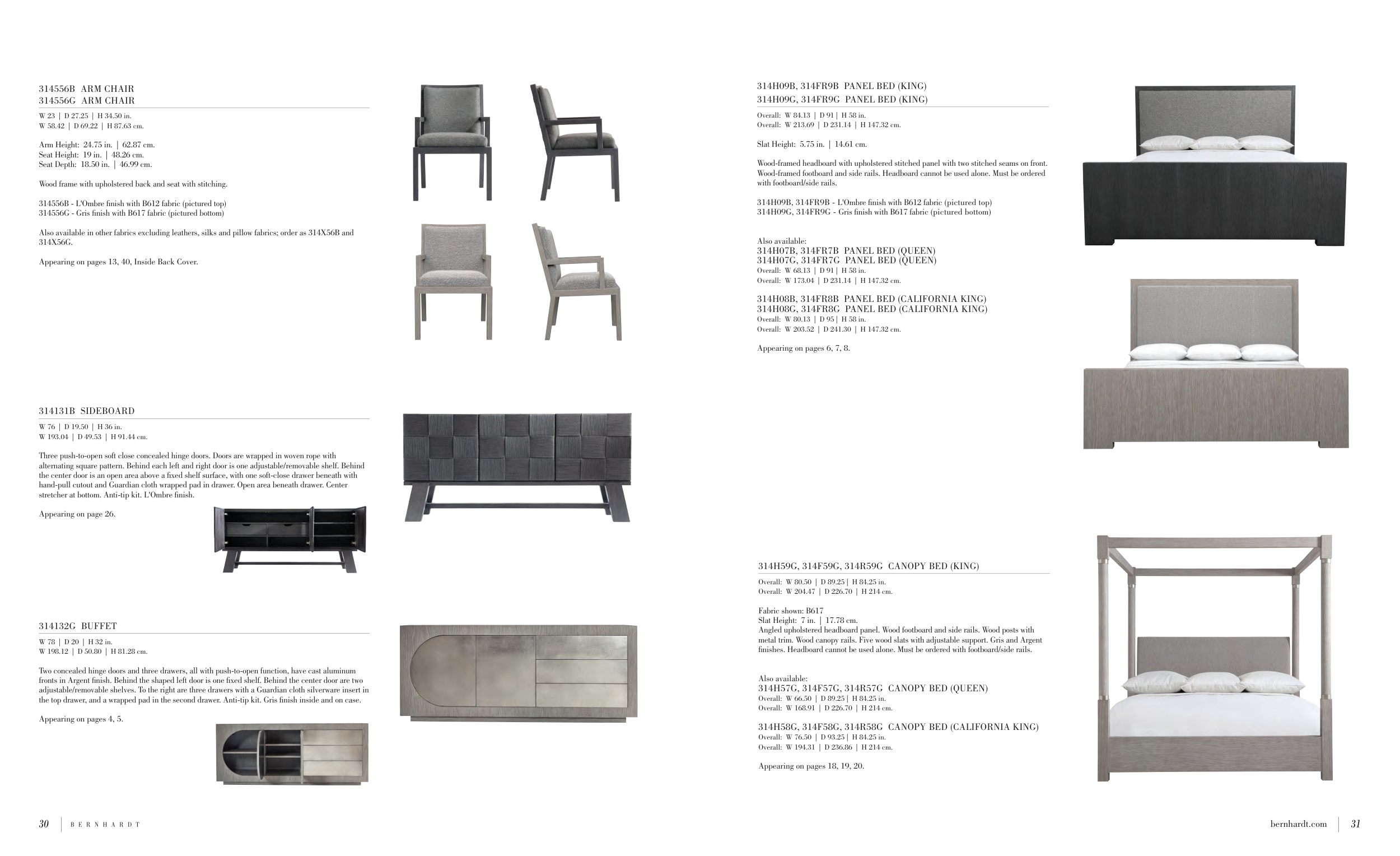 314H09G, 314FR9G - Gris finish with B617 fabric (pictured bottom)