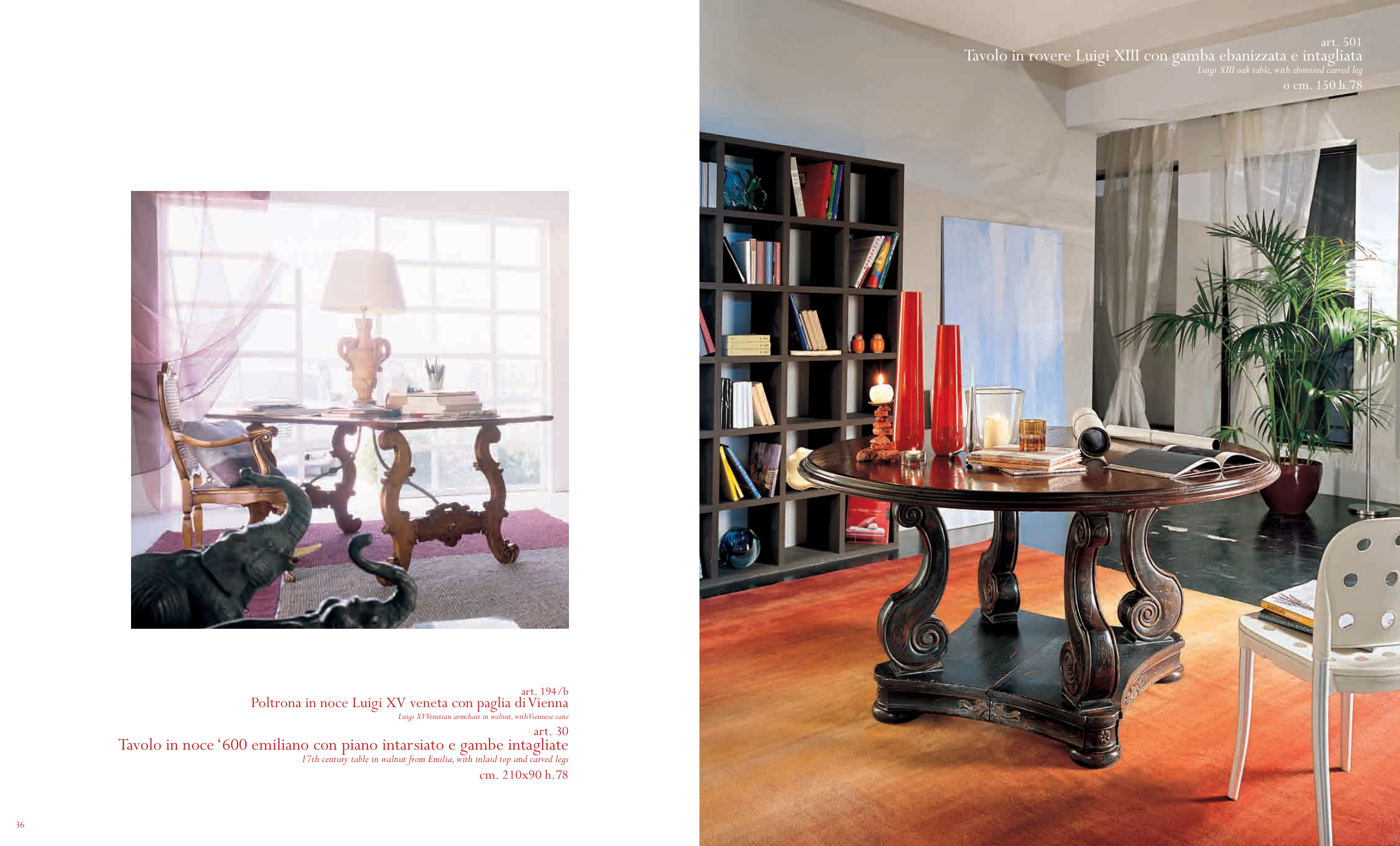 Tavolo in noce ‘600 emiliano con piano intarsiato e gambe intagliate