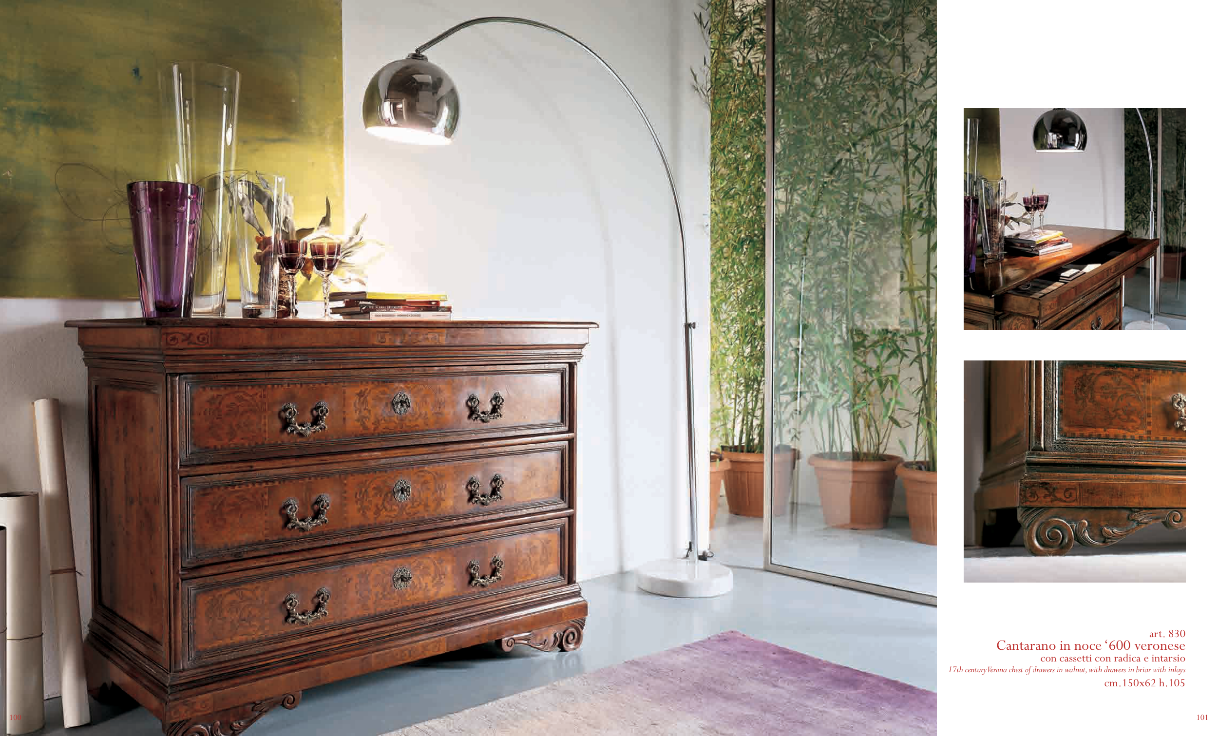 con cassetti con radica e intarsio