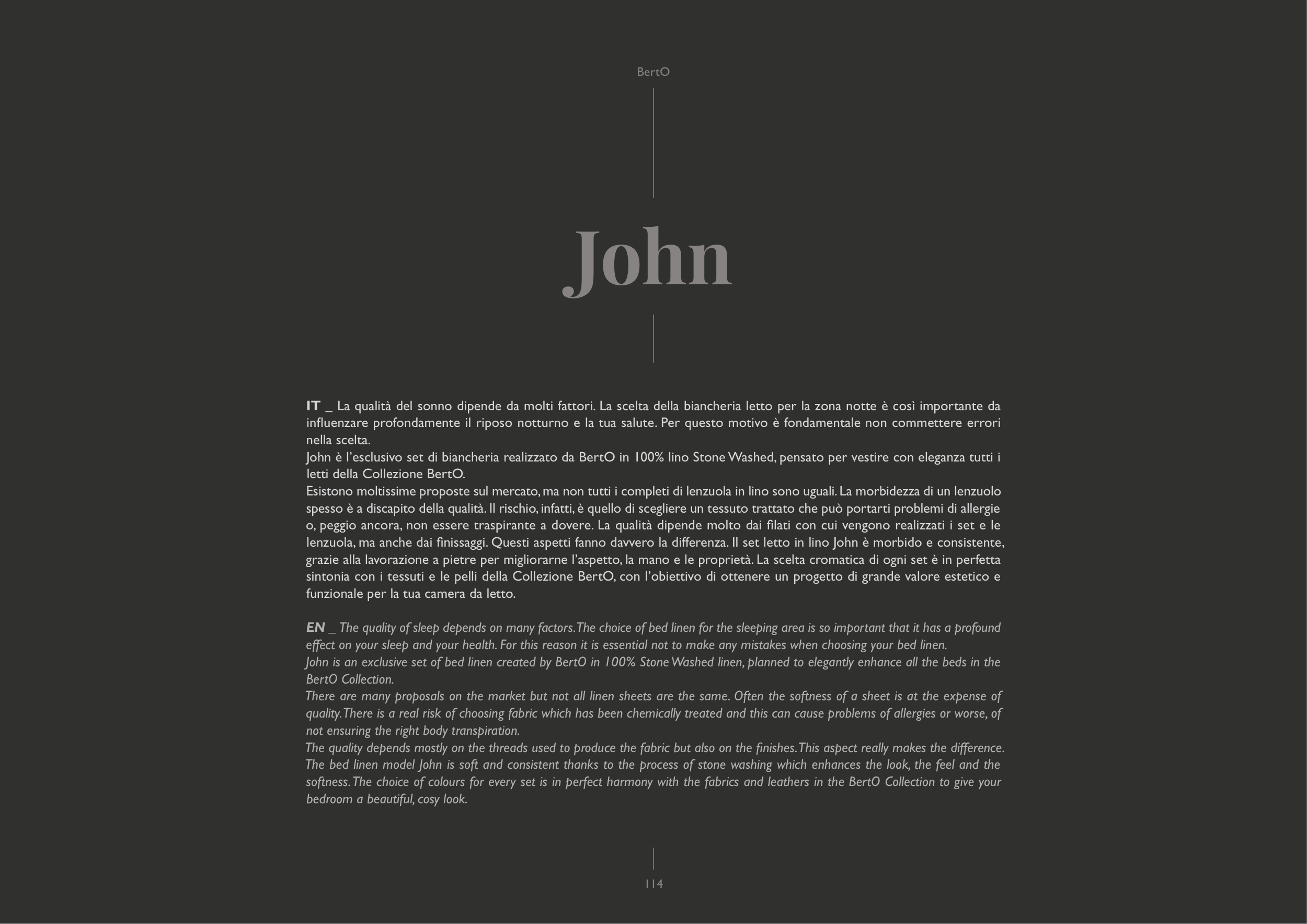 John is an exclusive set of bed linen created by BertO in 100% Stone Washed linen, planned to elegantly enhance all the beds in the