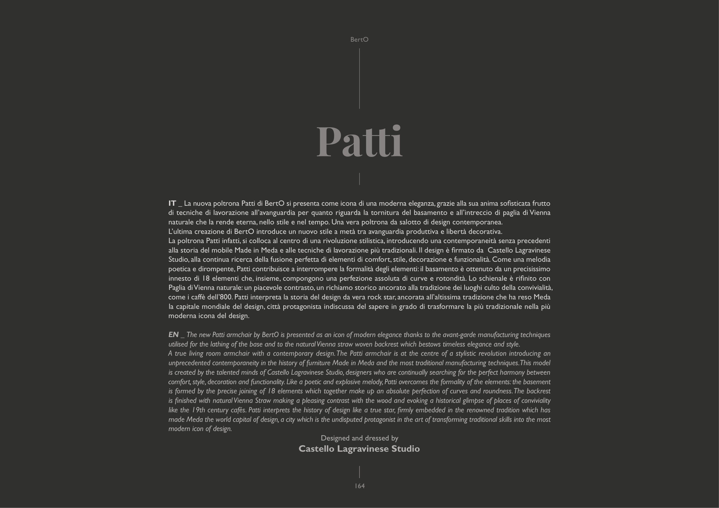 IT _ La nuova poltrona Patti di BertO si presenta come icona di una moderna eleganza, grazie alla sua anima sofisticata frutto
