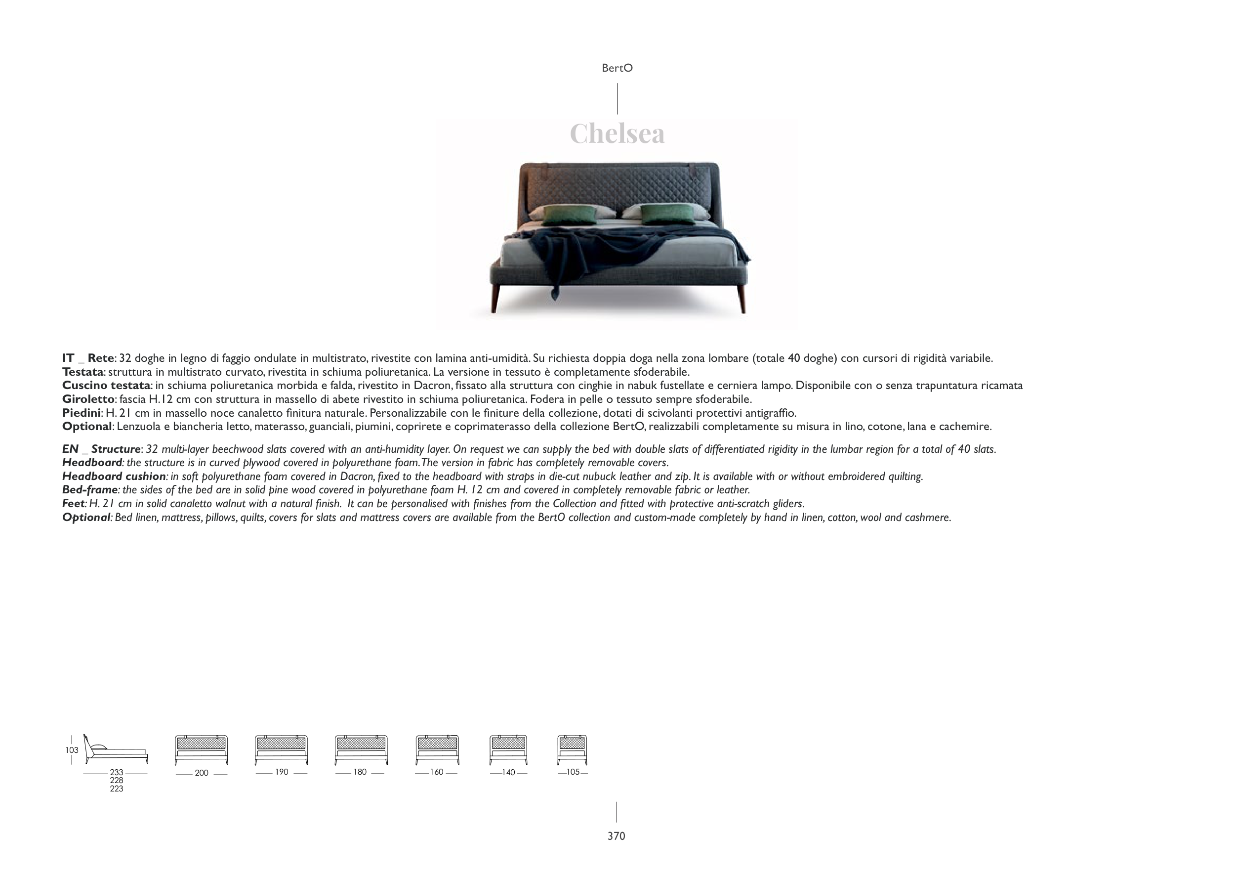 EN _ Structure: 32 multi-layer beechwood slats covered with an anti-humidity layer. On request we can supply the bed with double slats of differentiated rigidity in the lumbar region for a total of 40 slats.