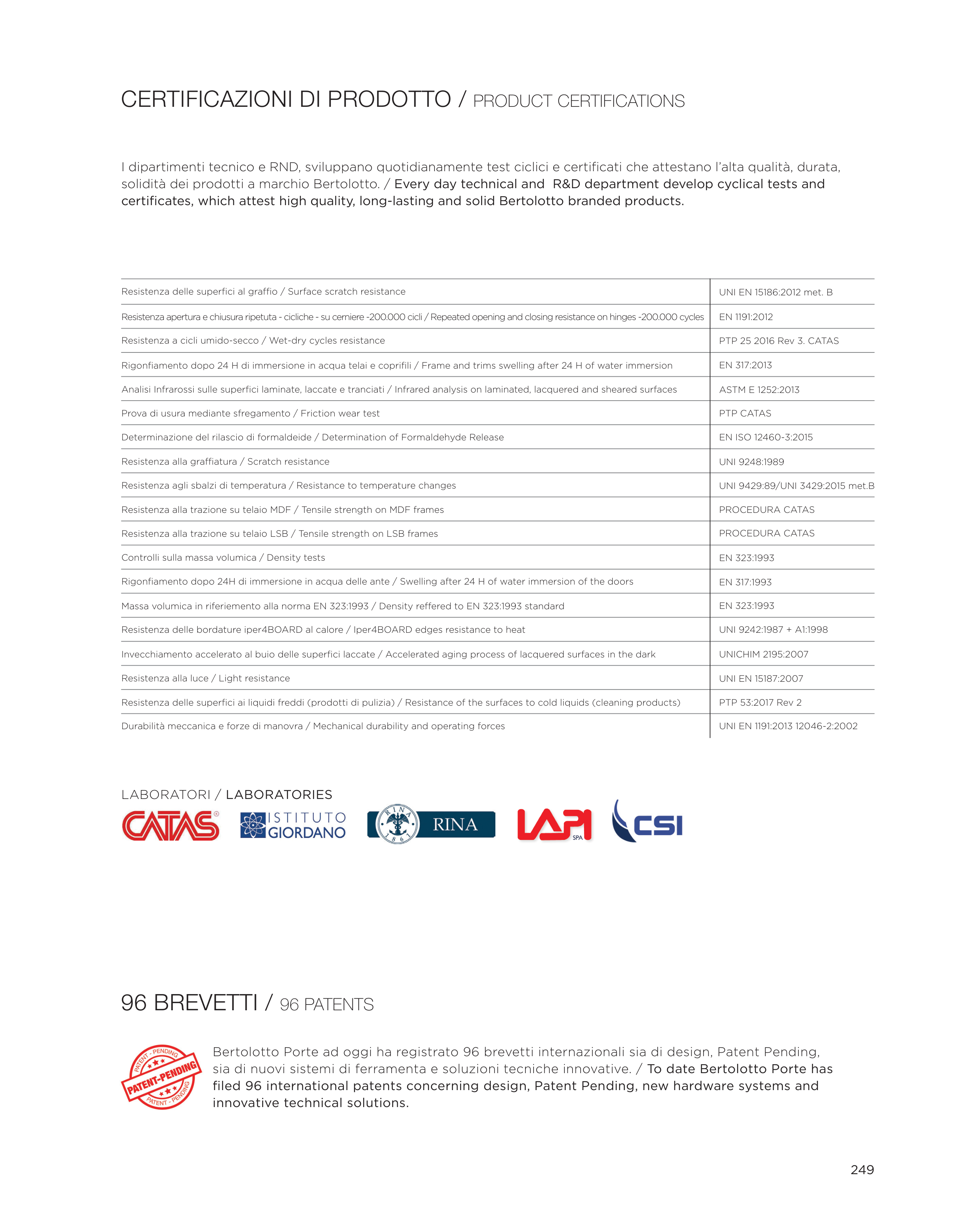 Bertolotto Porte ad oggi ha registrato 96 brevetti internazionali sia di design, Patent Pending,