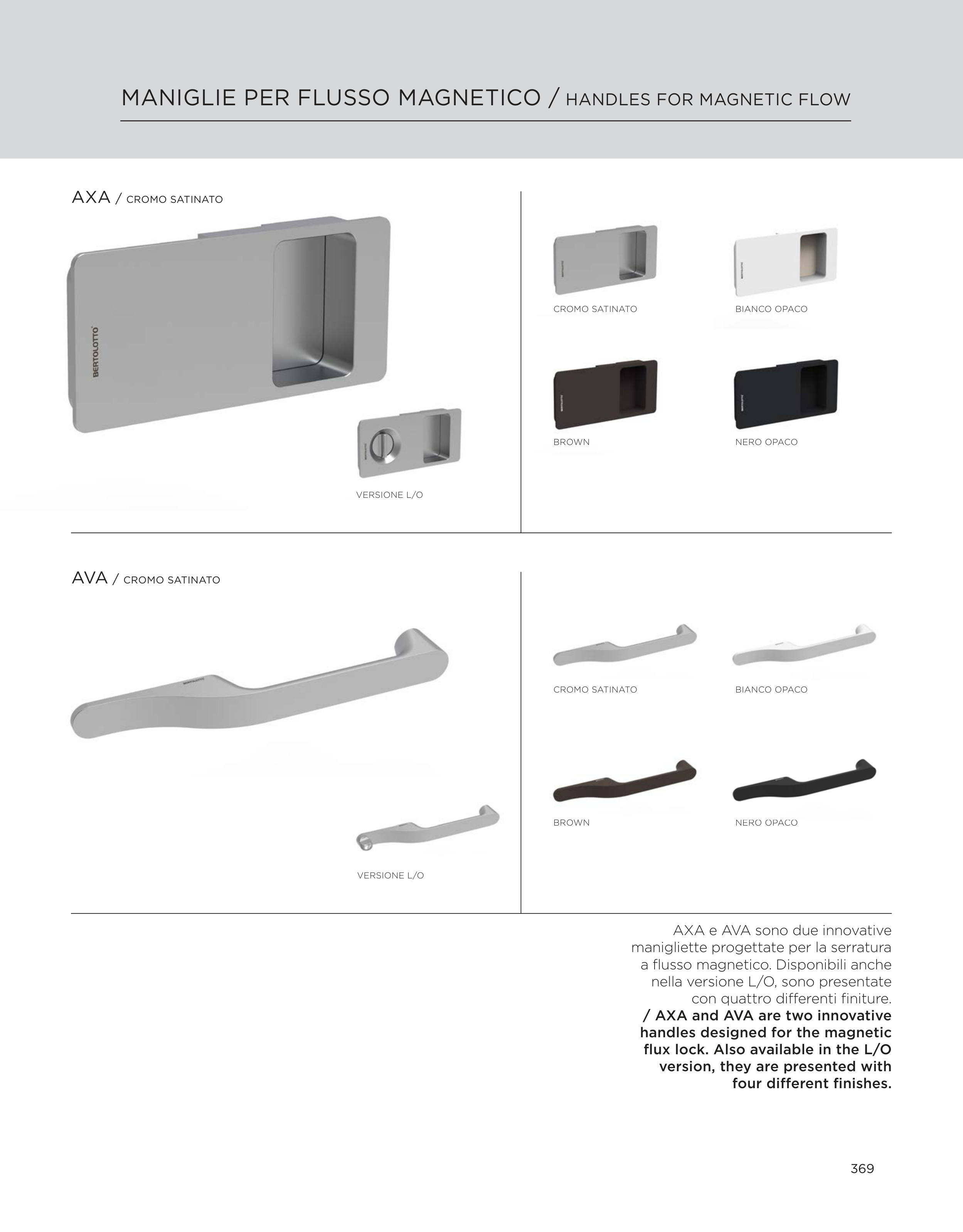 MANIGLIE PER FLUSSO MAGNETICO / HANDLES FOR MAGNETIC FLOW