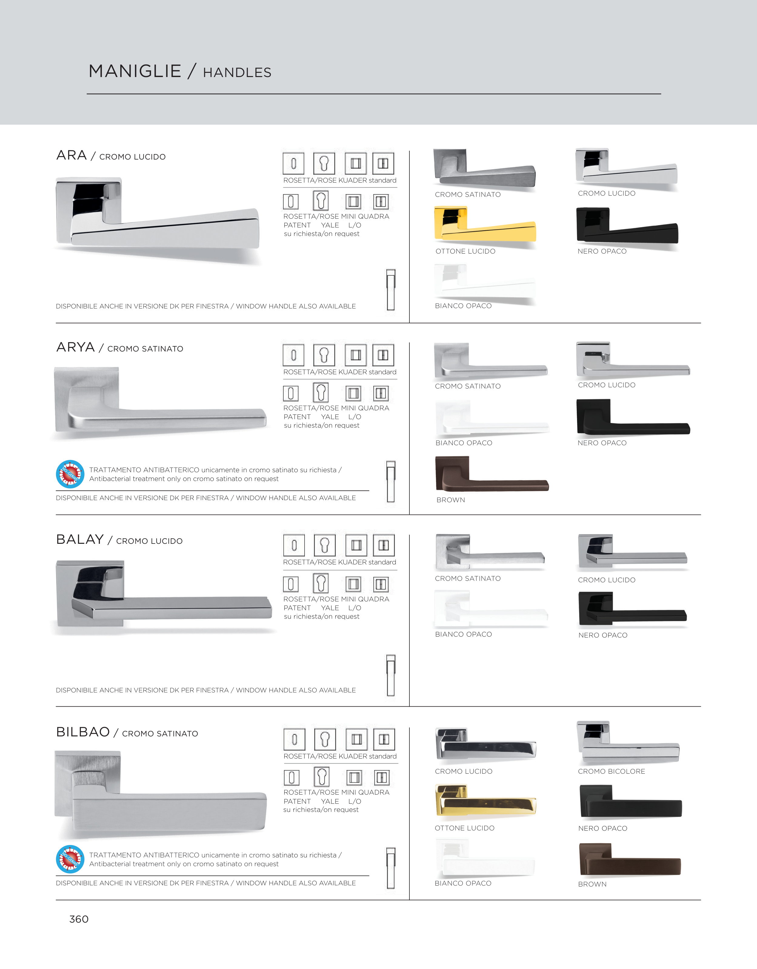 DISPONIBILE ANCHE IN VERSIONE DK PER FINESTRA / WINDOW HANDLE ALSO AVAILABLE
