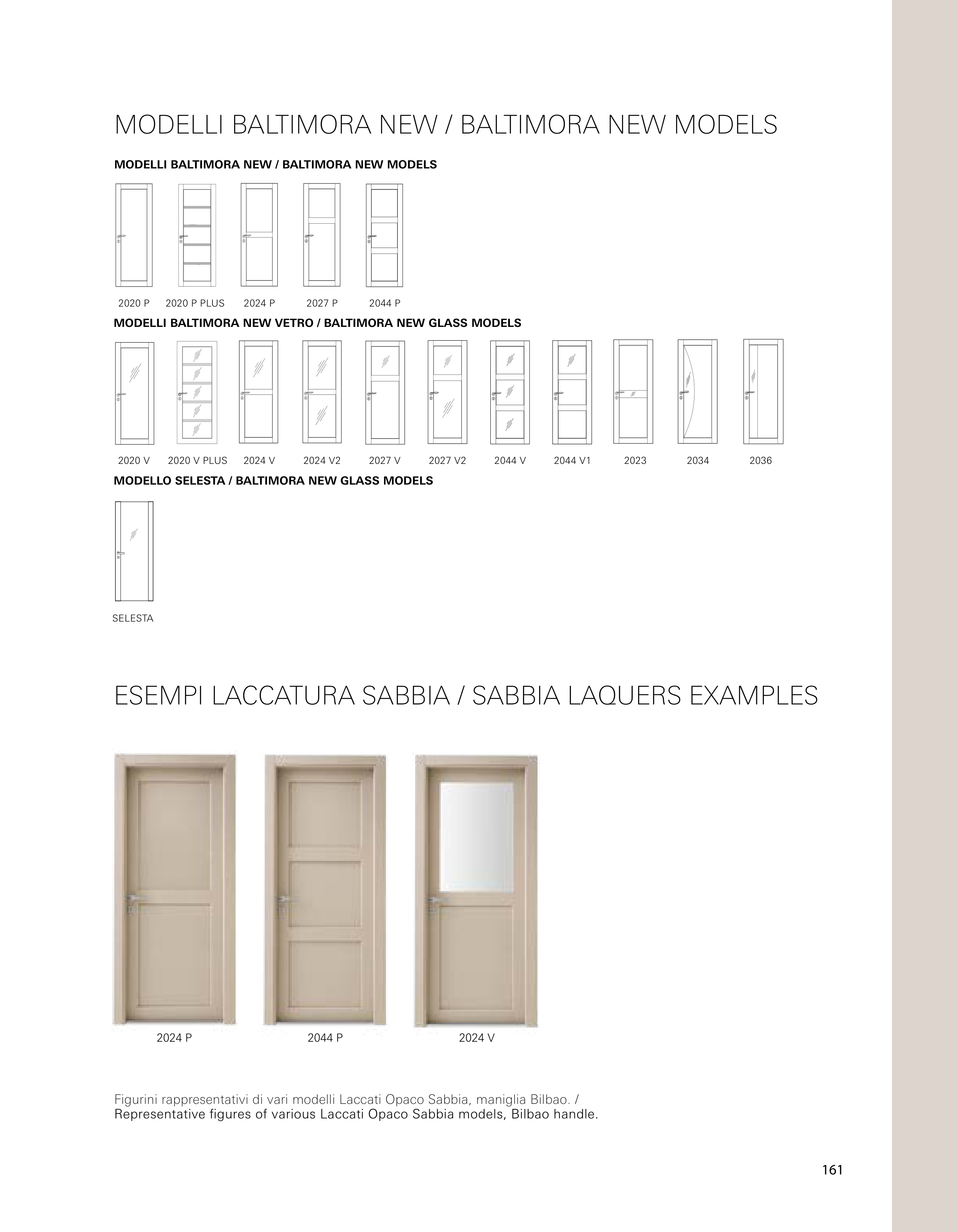 Figurini rappresentativi di vari modelli Laccati Opaco Sabbia, maniglia Bilbao. /