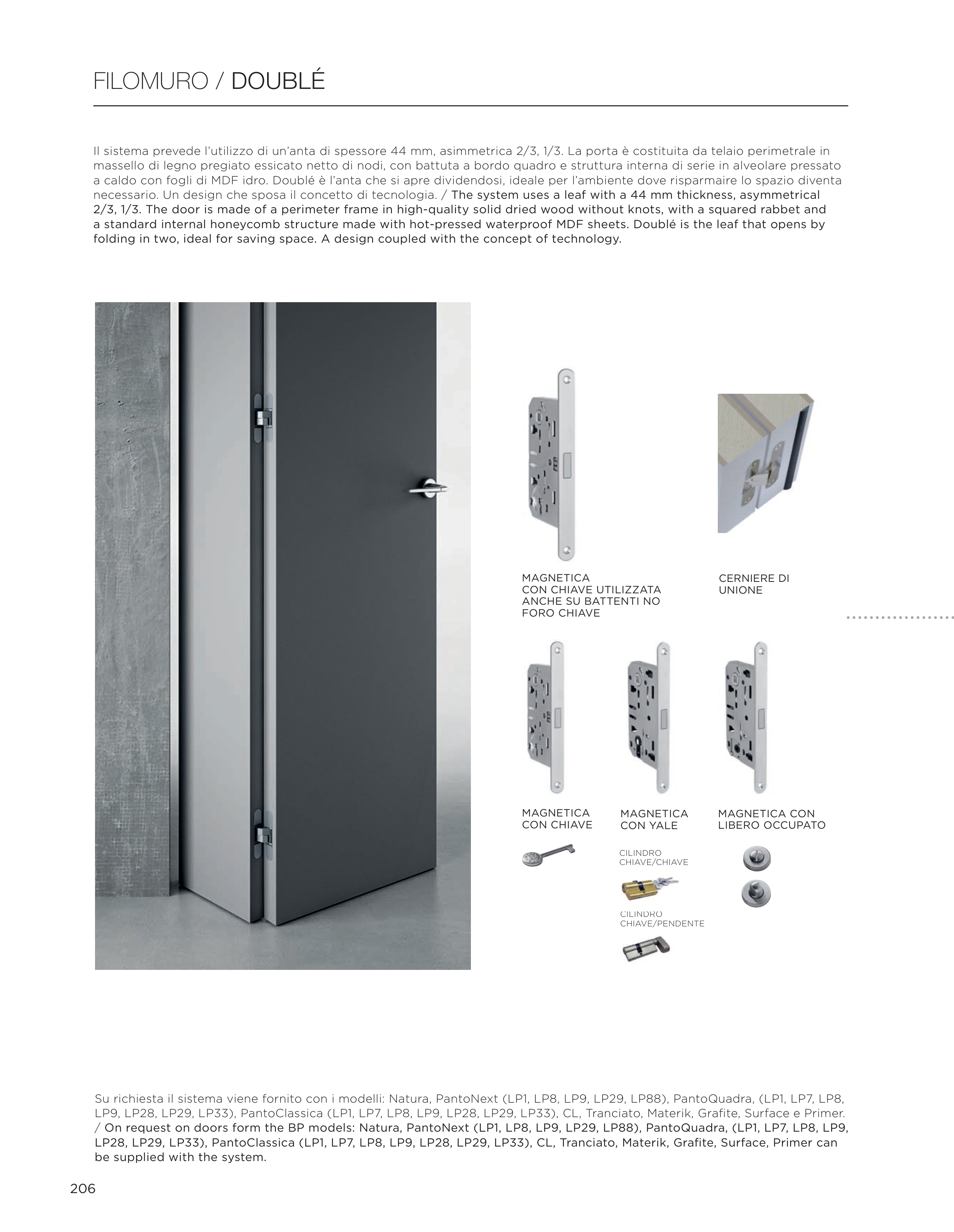 necessario. Un design che sposa il concetto di tecnologia. / The system uses a leaf with a 44 mm thickness, asymmetrical