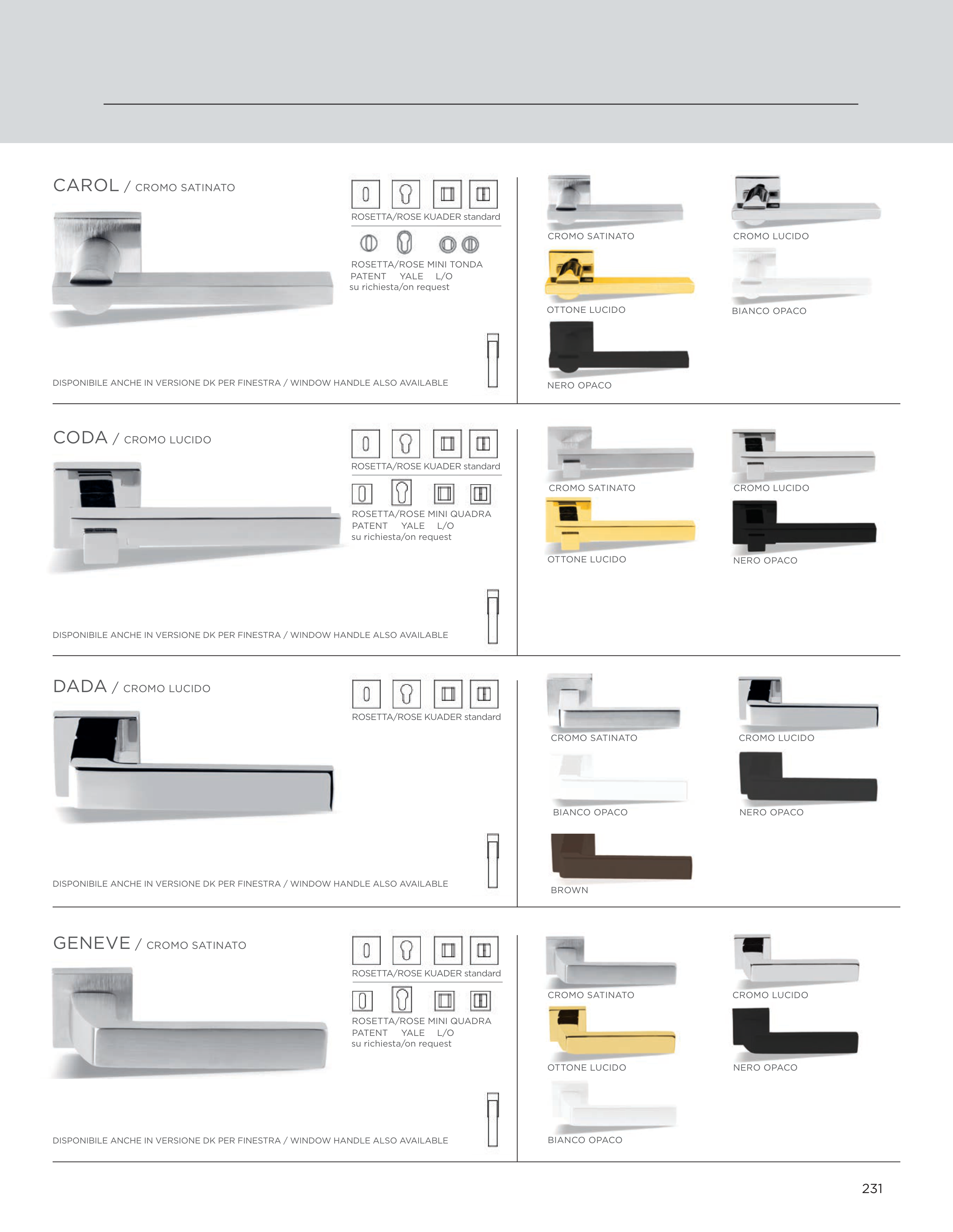 DISPONIBILE ANCHE IN VERSIONE DK PER FINESTRA / WINDOW HANDLE ALSO AVAILABLE