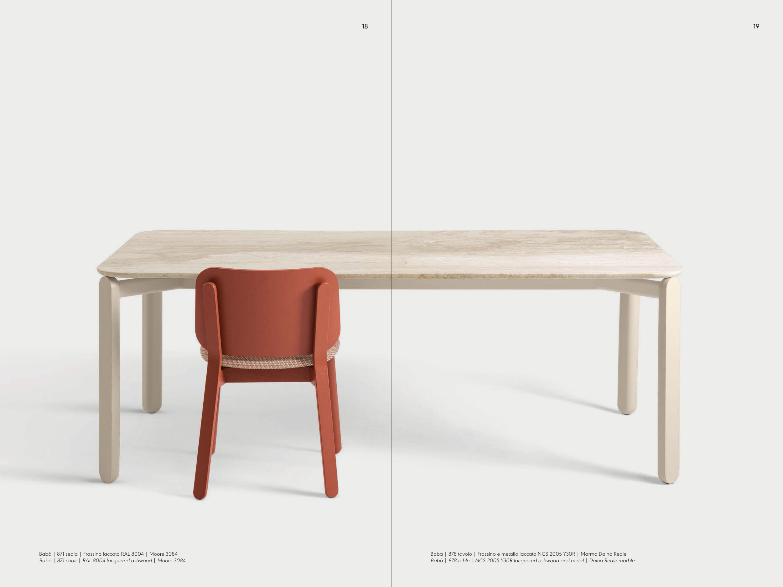 Babà | 871 chair | RAL 8004 lacquered ashwood | Moore 3084