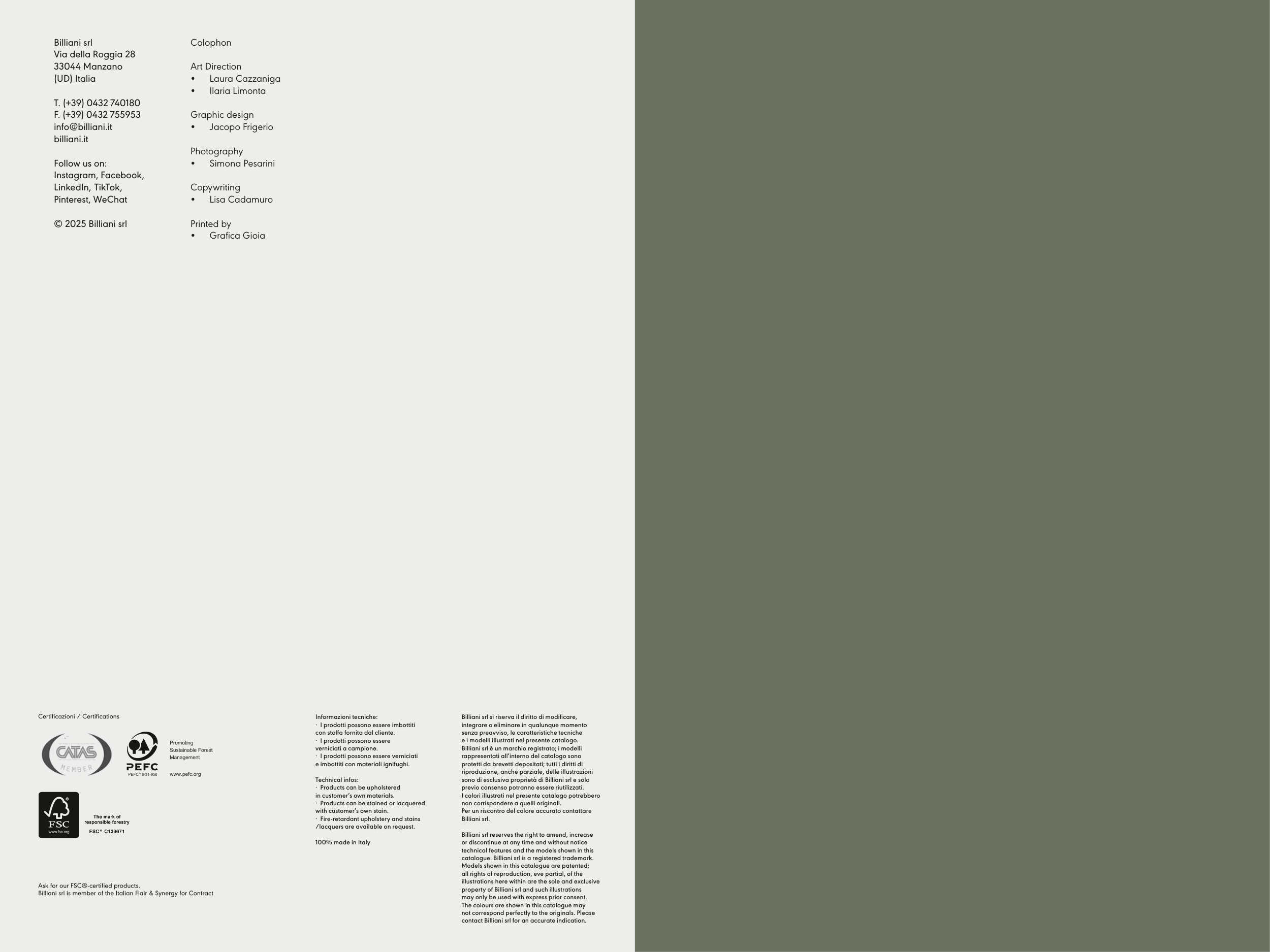 catalogue. Billiani srl is a registered trademark.