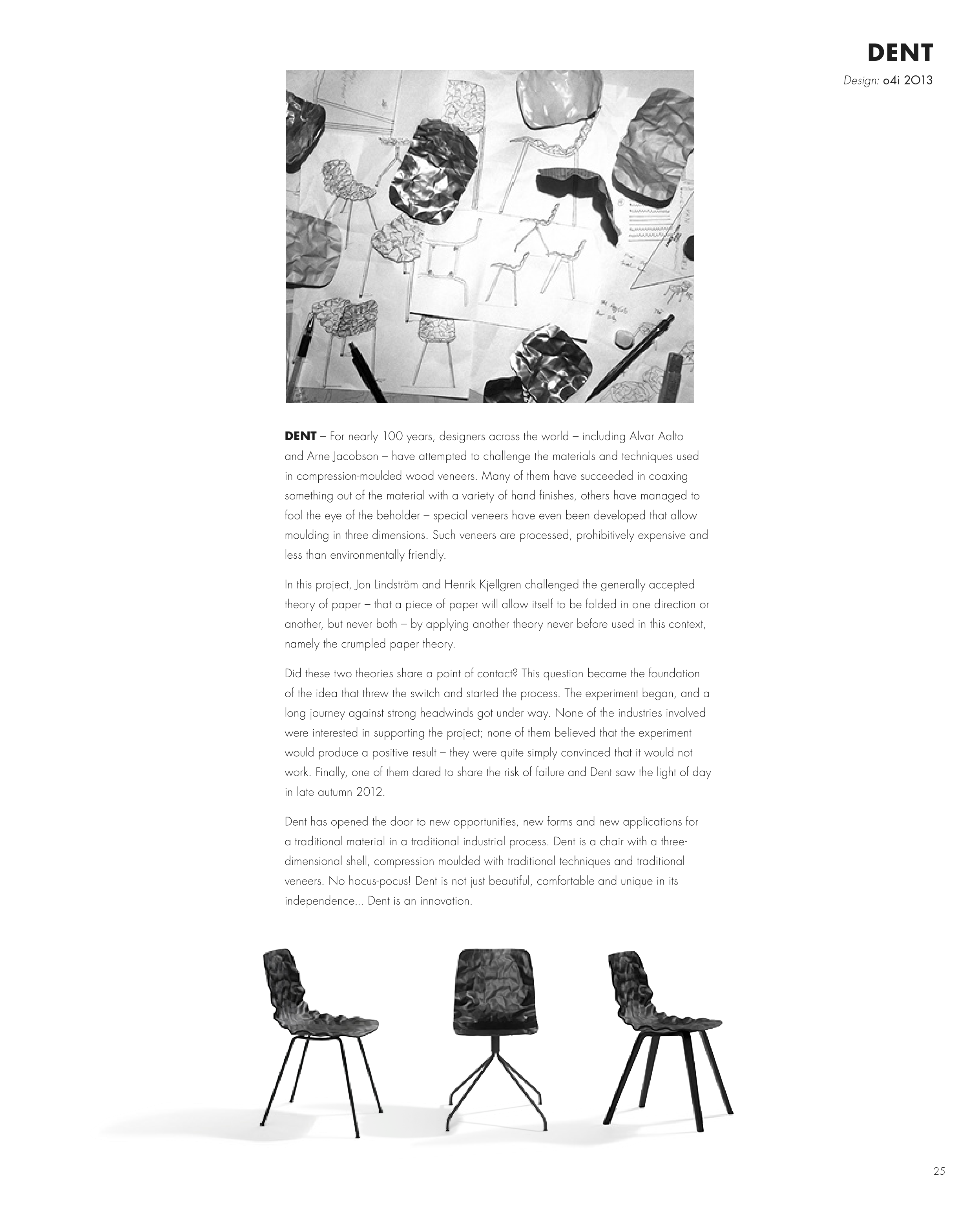 a traditional material in a traditional industrial process. Dent is a chair with a three-