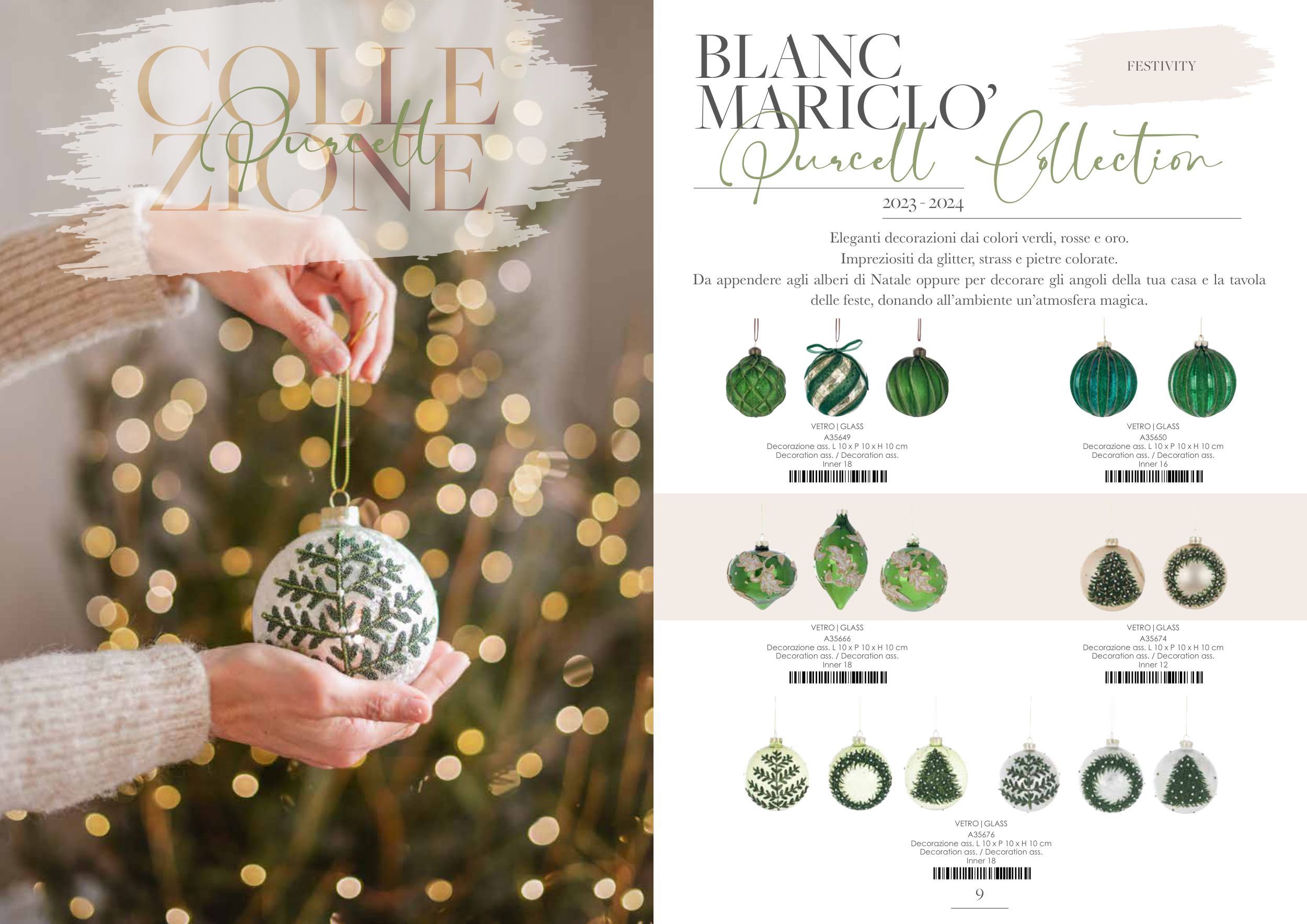 Eleganti decorazioni dai colori verdi, rosse e oro.