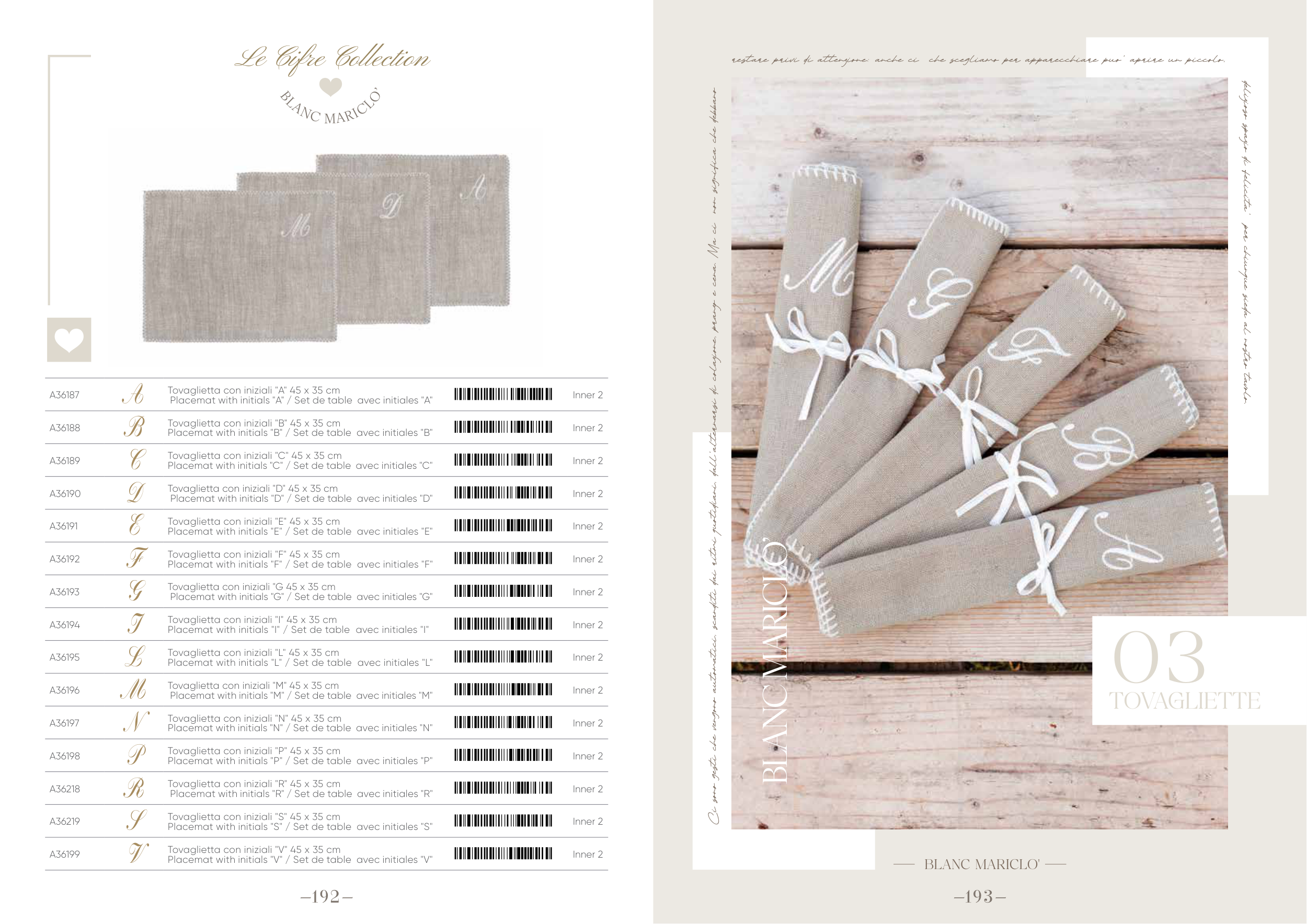 Placemat with initials "L" / Set de table avec initiales "L"