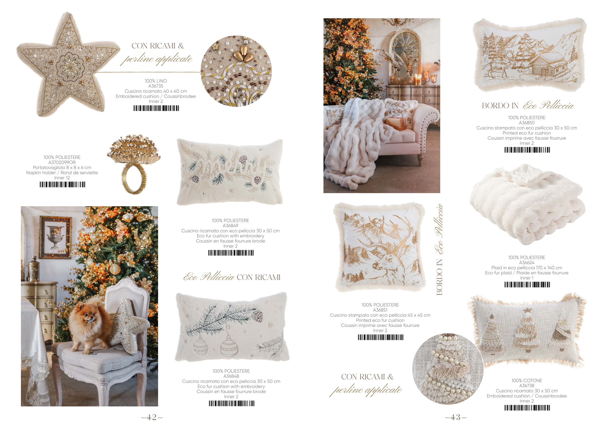 Coussin en fausse fourrure brode
