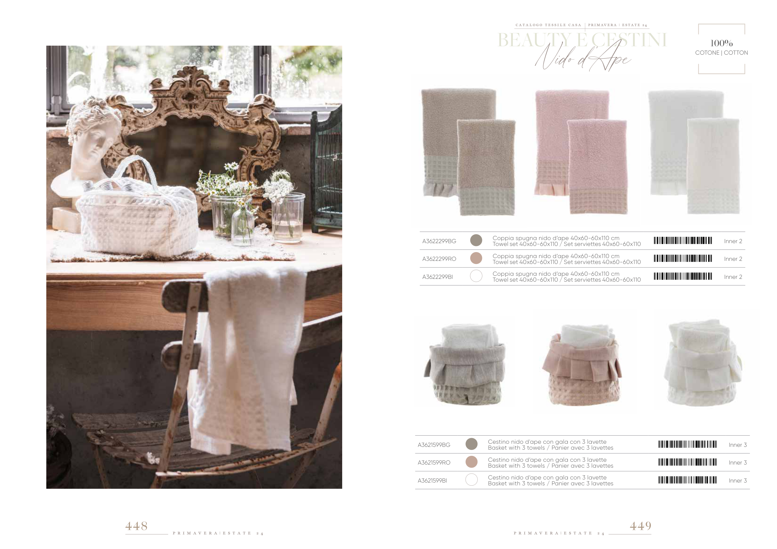 Cestino nido d’ape con gala con 3 lavette