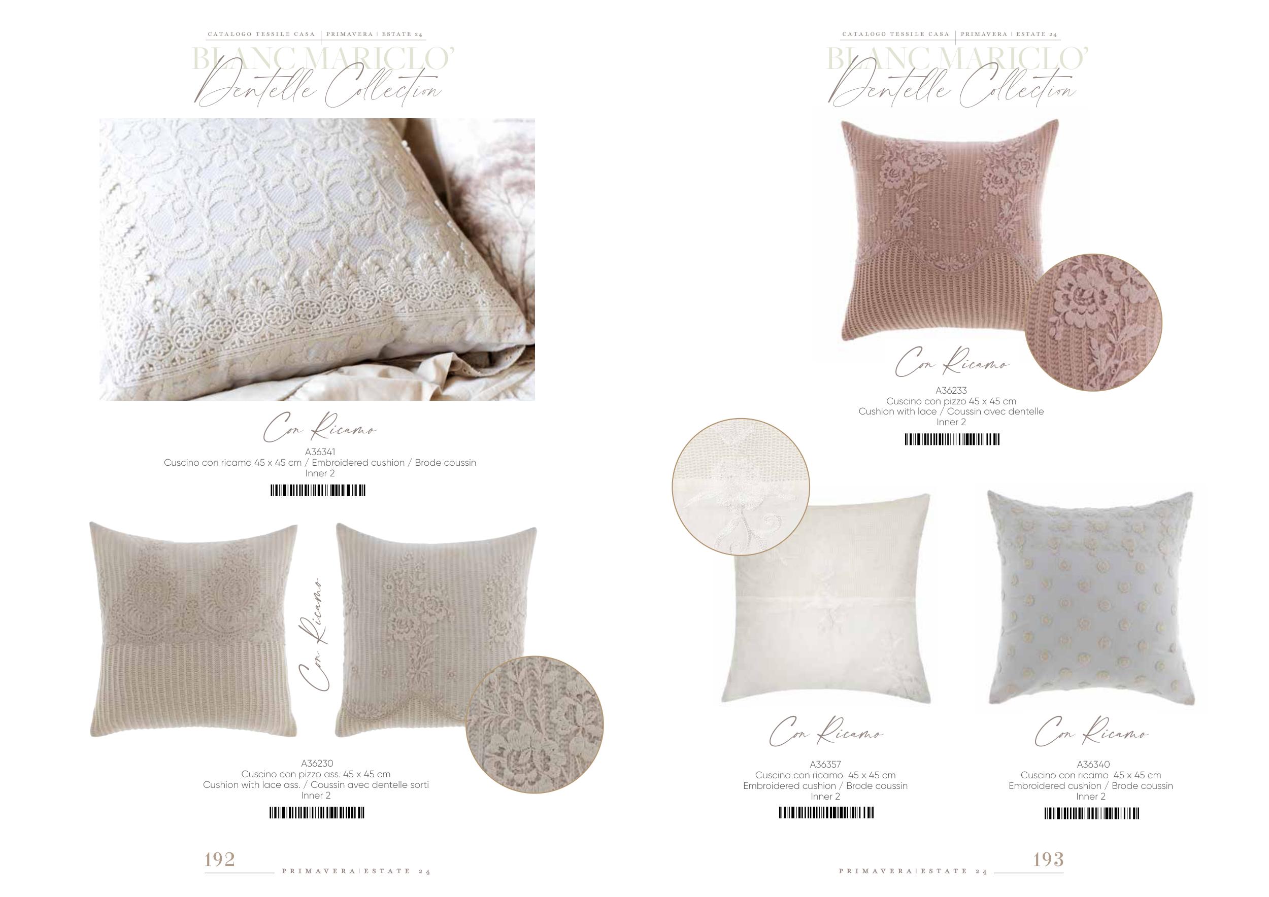 Cushion with lace ass. / Coussin avec dentelle sorti