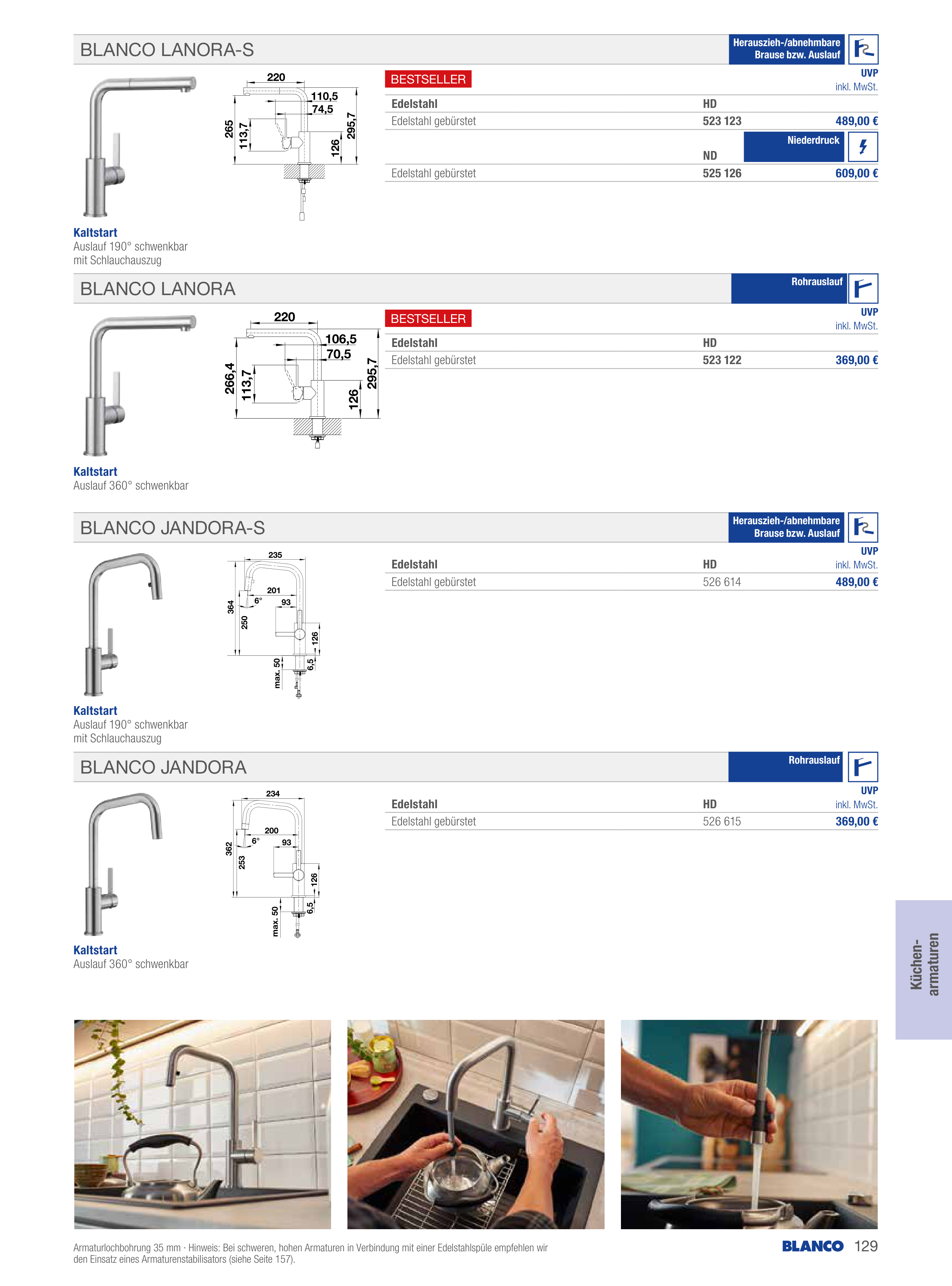 Catalogue BLANCO: Kernsortiment 2024, page 129 of 160