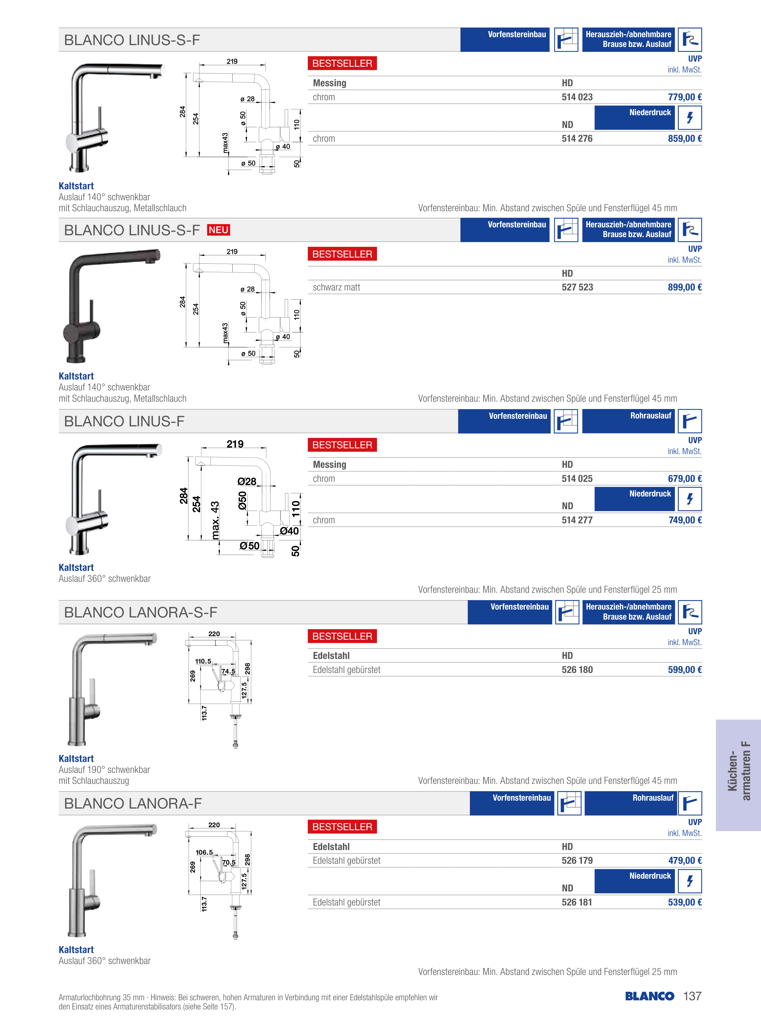 Catalogue BLANCO: Kernsortiment 2024, page 137 of 160