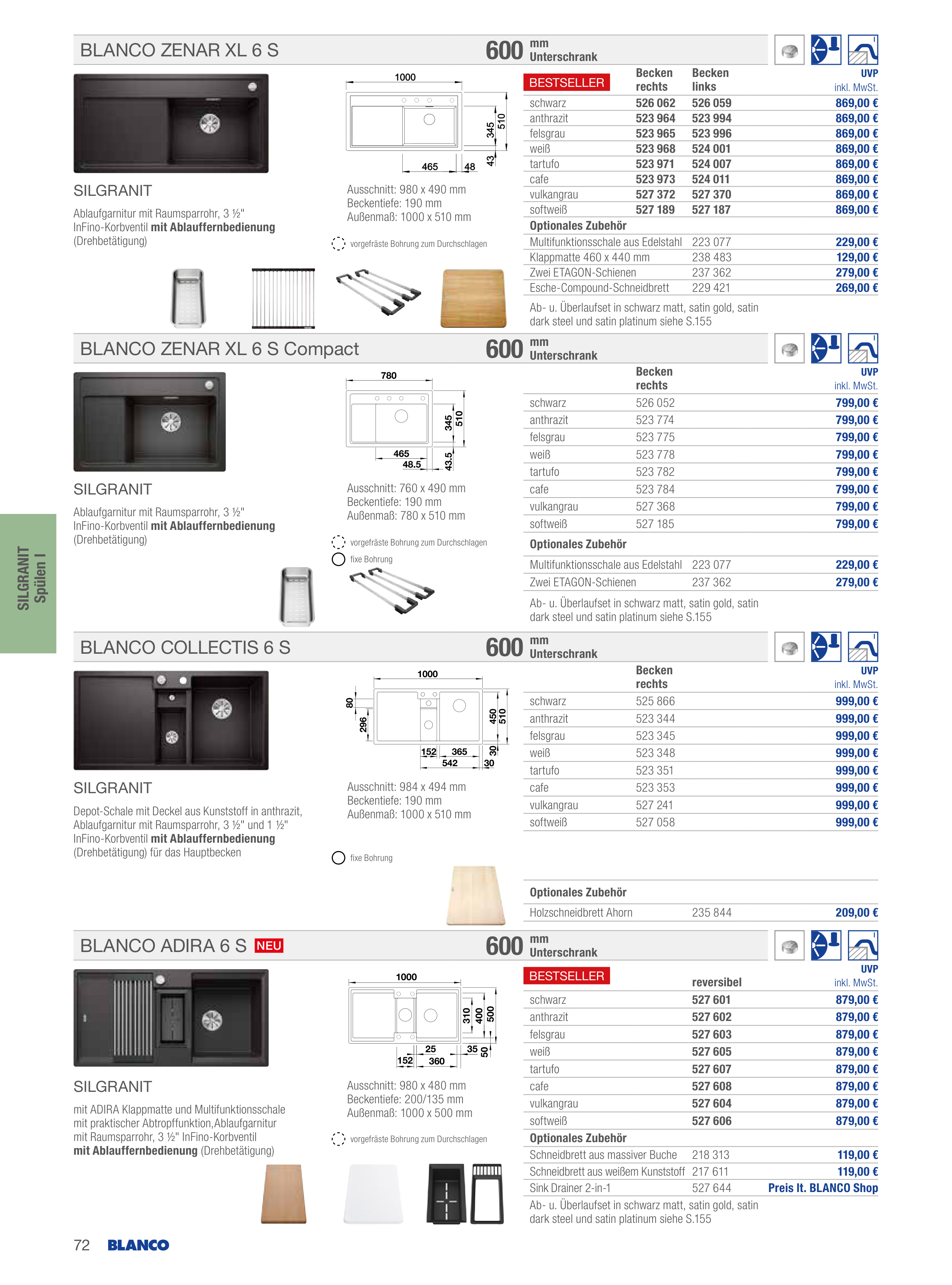 Catalogue BLANCO: Kernsortiment 2024, page 72 of 160