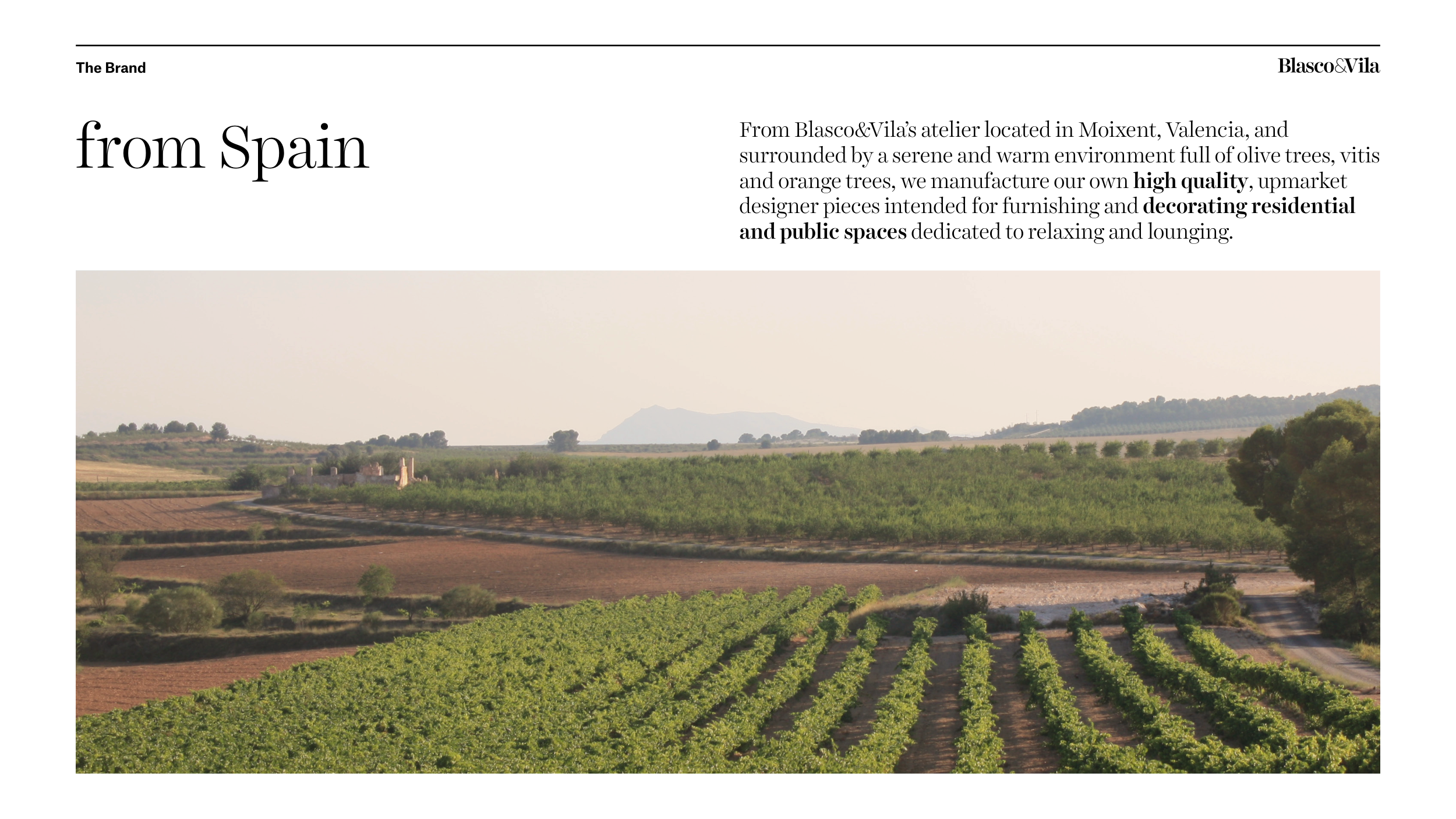 From Blasco&Vila’s atelier located in Moixent, Valencia, and