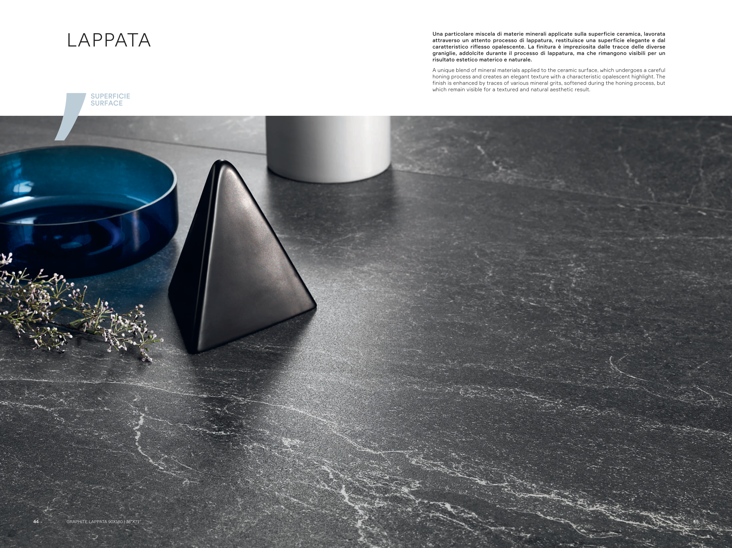 attraverso un attento processo di lappatura, restituisce una superficie elegante e dal