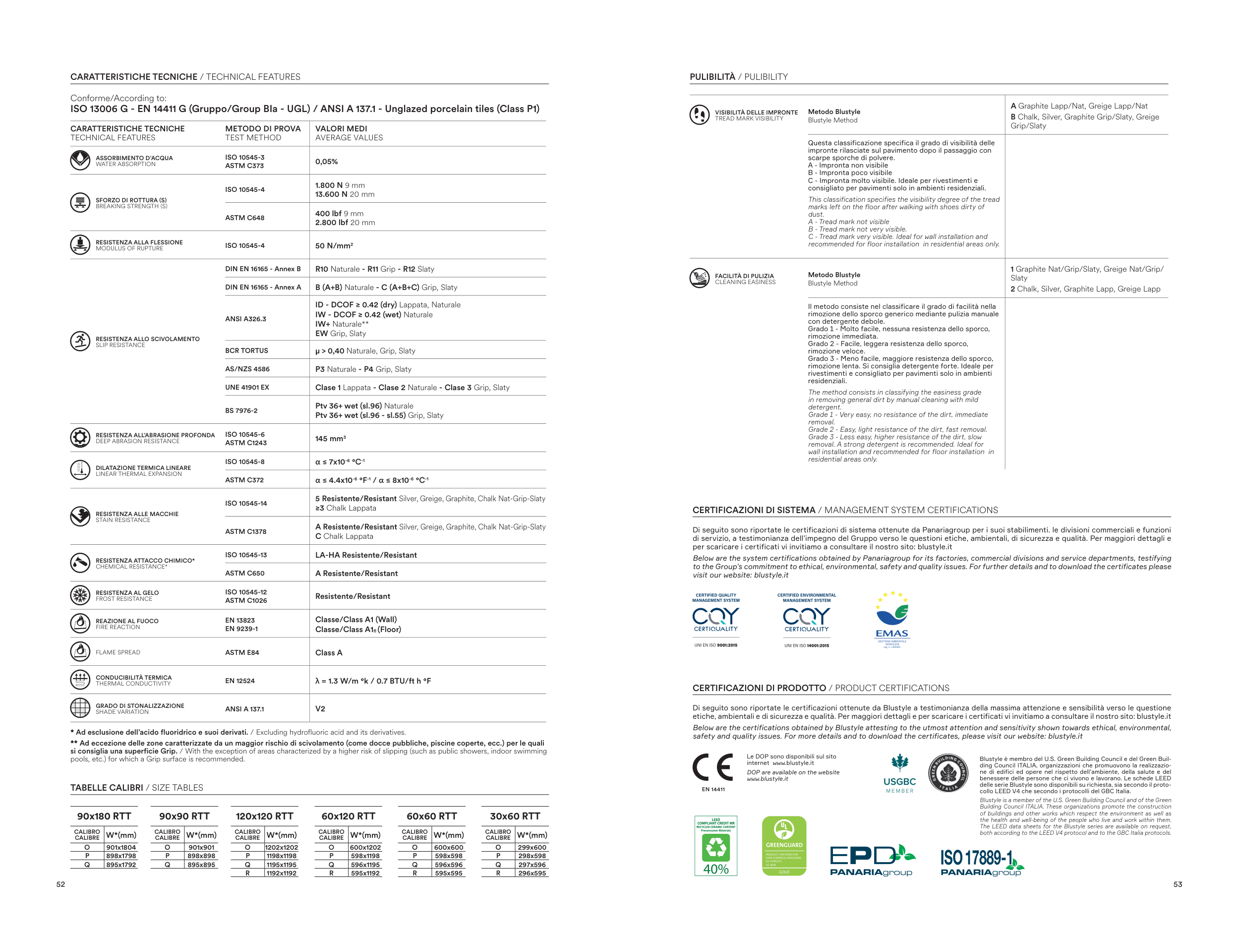 ISO 13006 G - EN 14411 G (Gruppo/Group BIa - UGL) / ANSI A 137.1 - Unglazed porcelain tiles (Class P1)