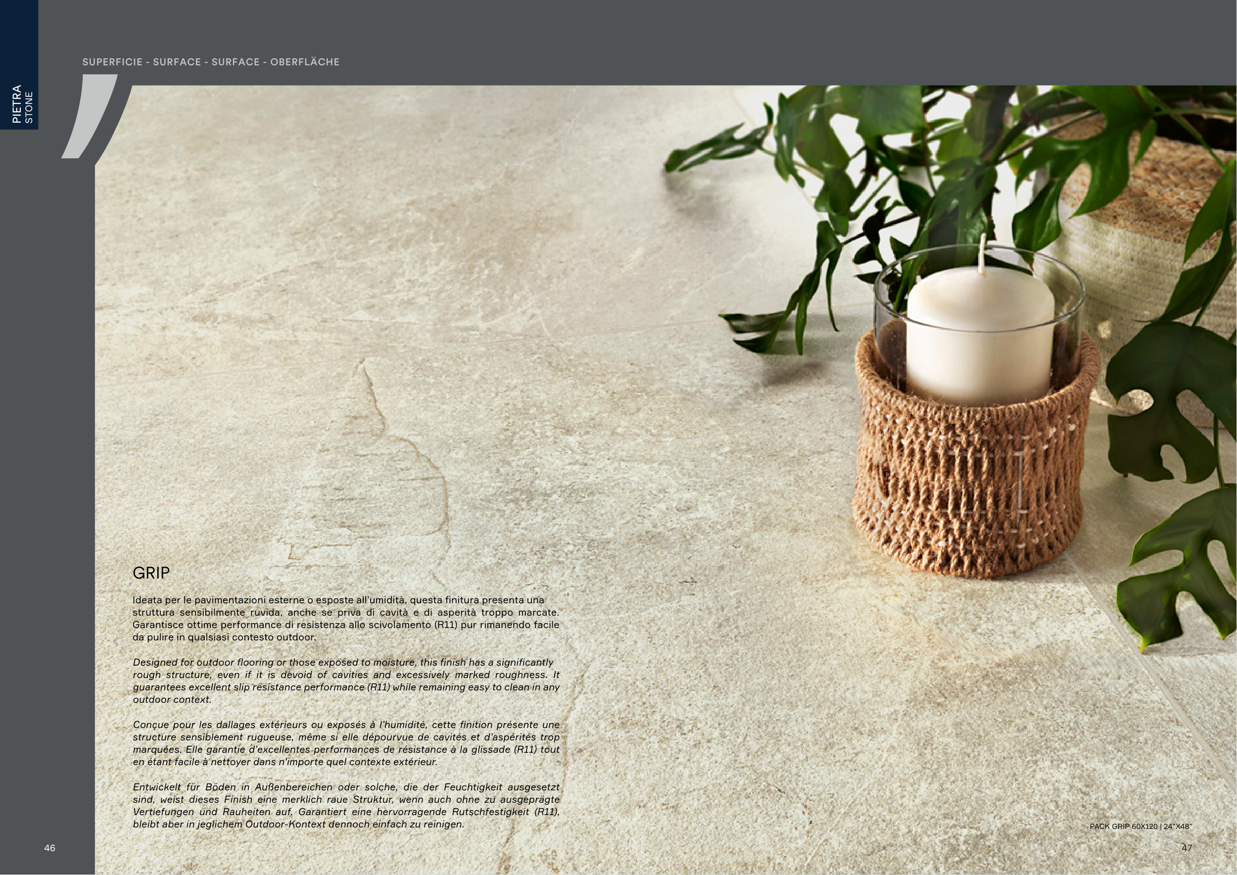guarantees excellent slip resistance performance (R11) while remaining easy to clean in any