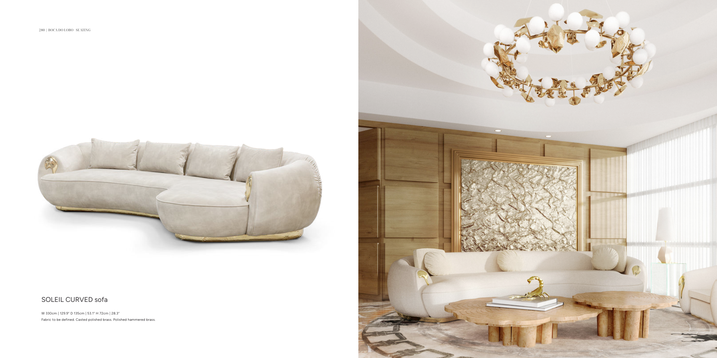 Fabric to be defined. Casted polished brass. Polished hammered brass.