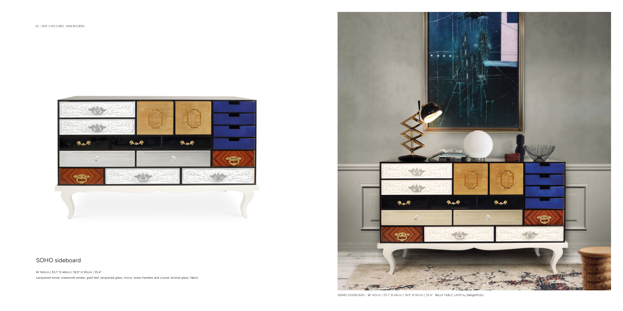 SOHO SIDEBOARD - W 140cm | 55.1” D 48cm | 18.9” H 90cm | 35.4” BILLY TABLE LAMP by DelightFULL