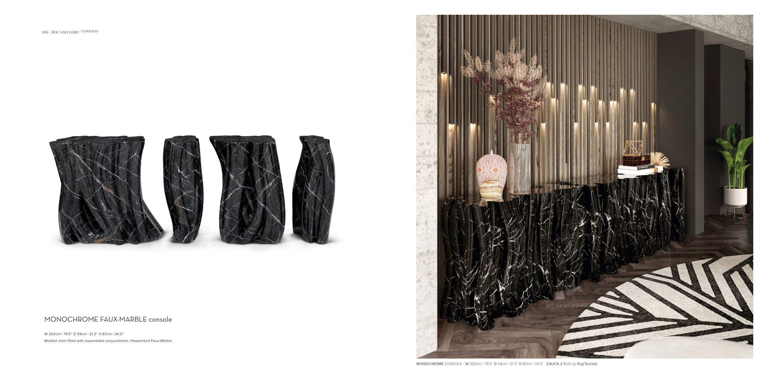MONOCHROME CONSOLE - W 202cm | 79.5” D 54cm | 21.3” H 87cm | 34.3” CAUCA 2 RUG by Rug’Society