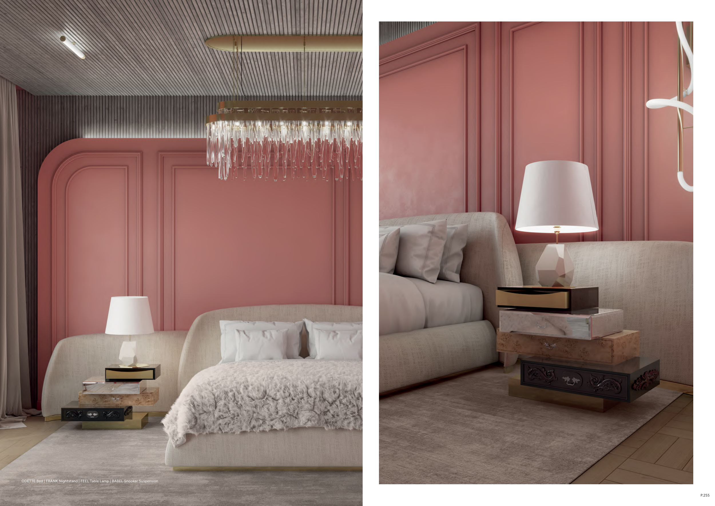 ODETTE Bed | FRANK Nightstand | FEEL Table Lamp | BABEL Snooker Suspension